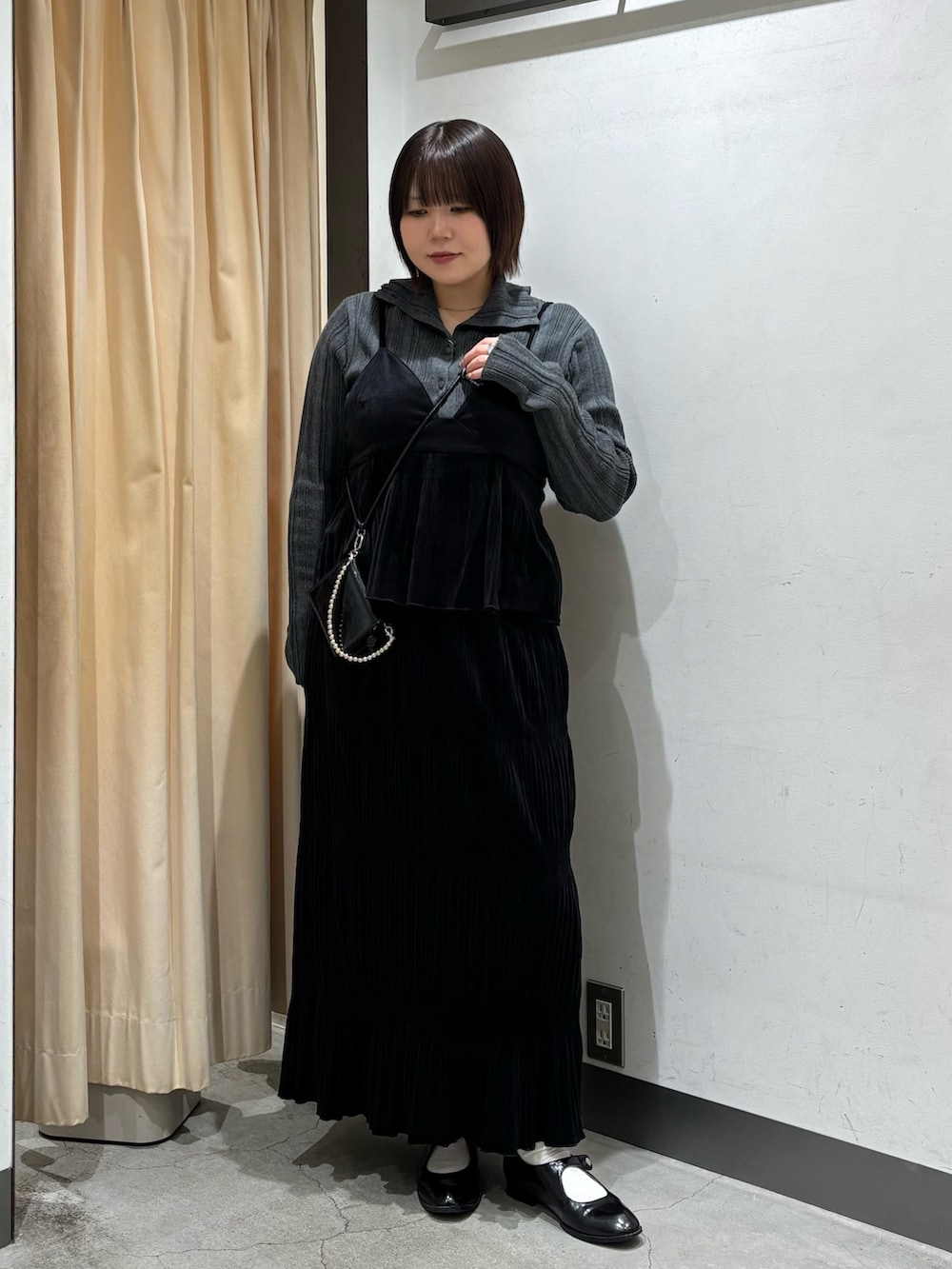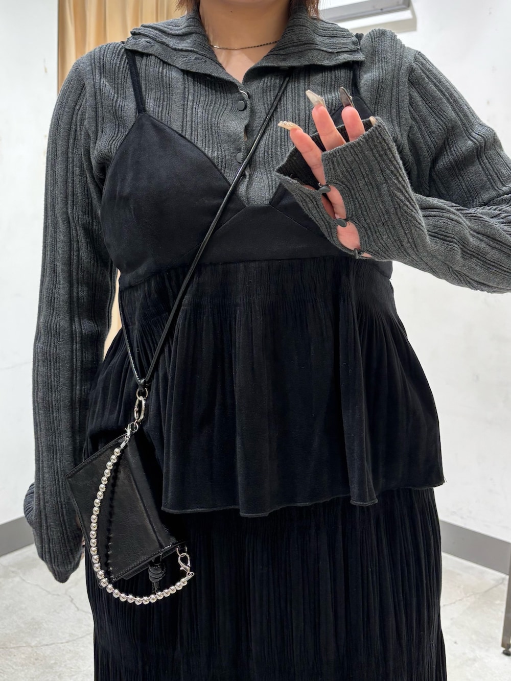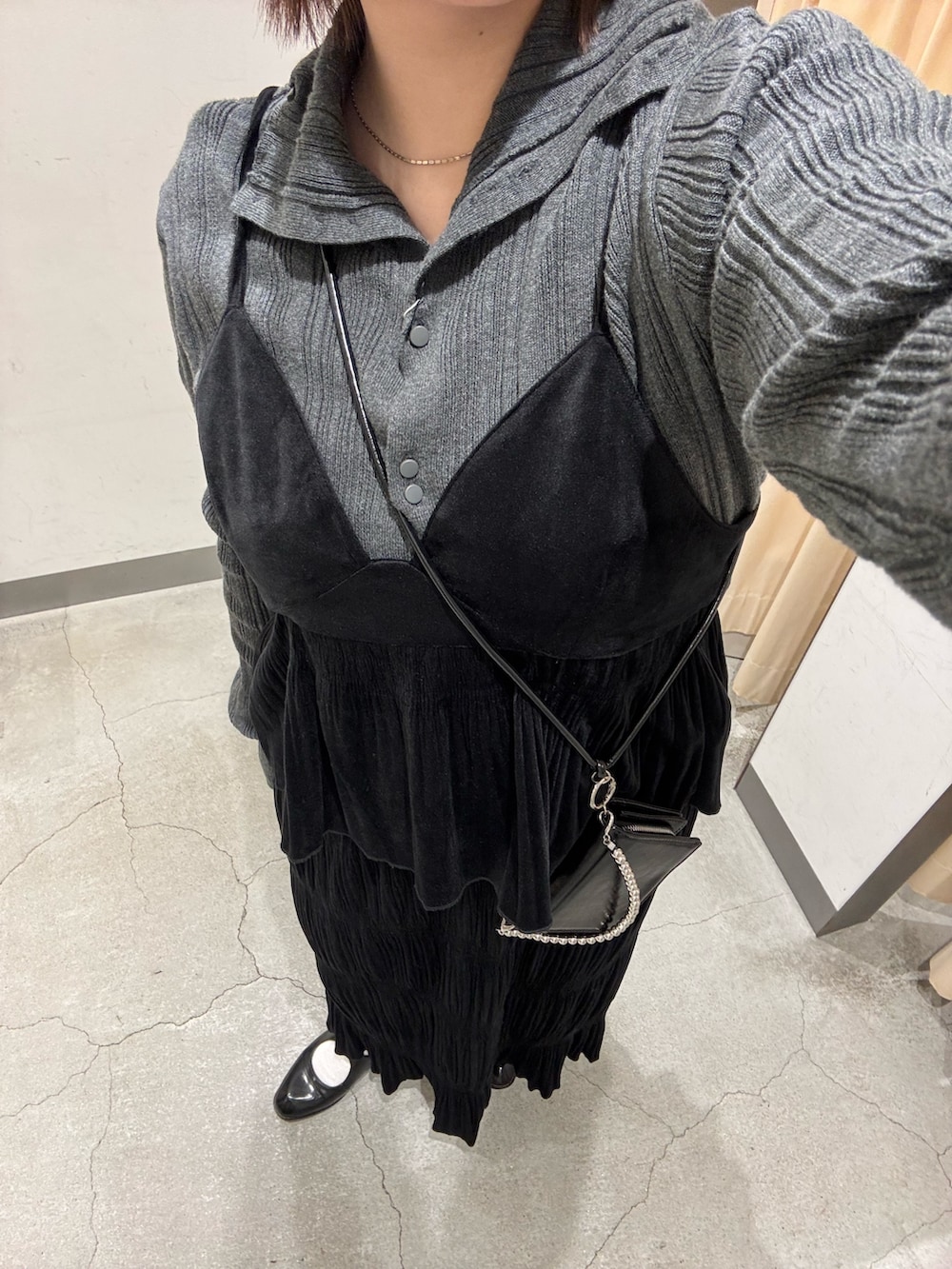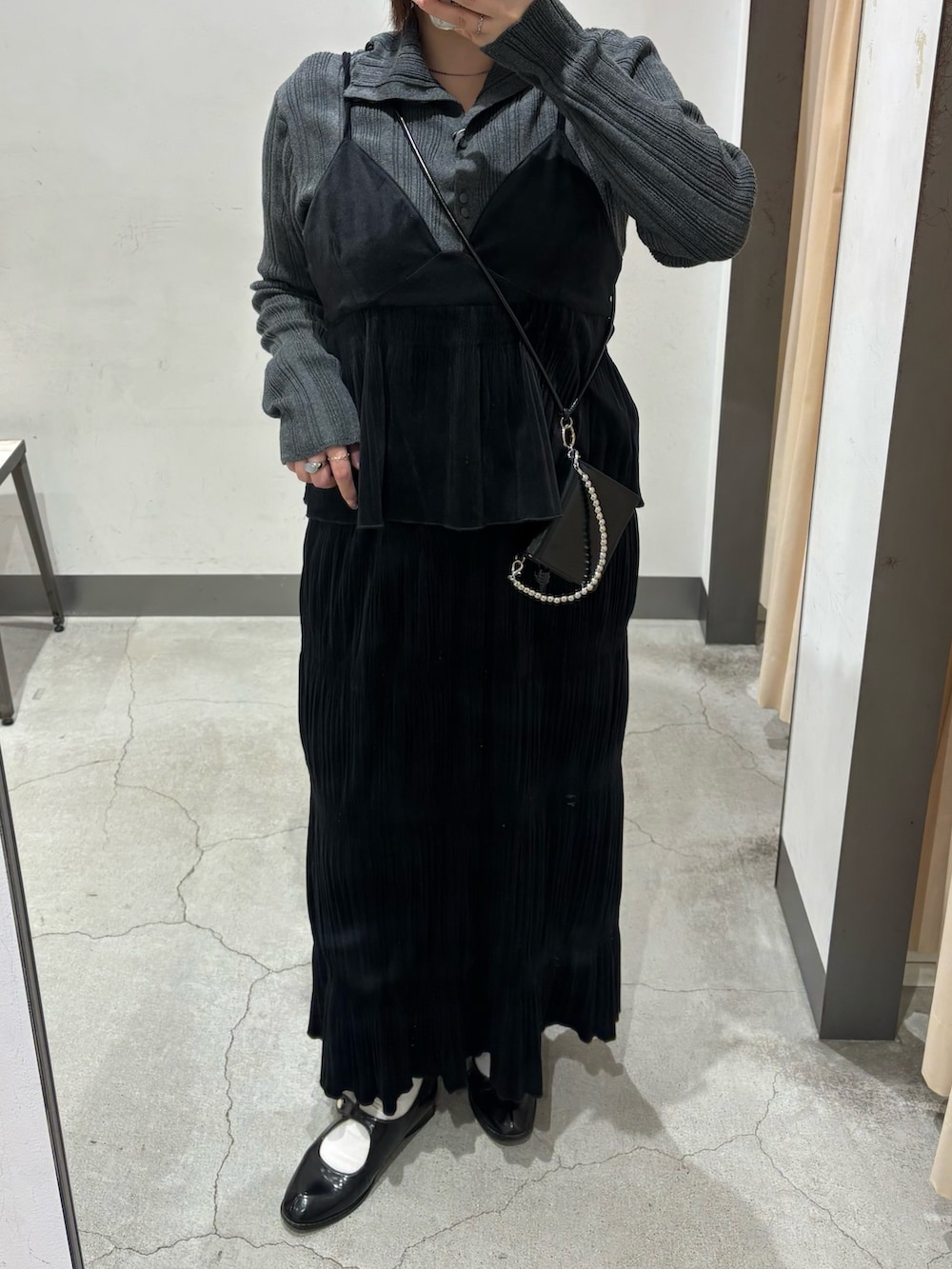 ビスチェは肩紐の長さを調節できるので中に着るインナーの分厚さも考慮でき、スカートは総ゴムなのでストレスフリーな履き心地です✊🏻