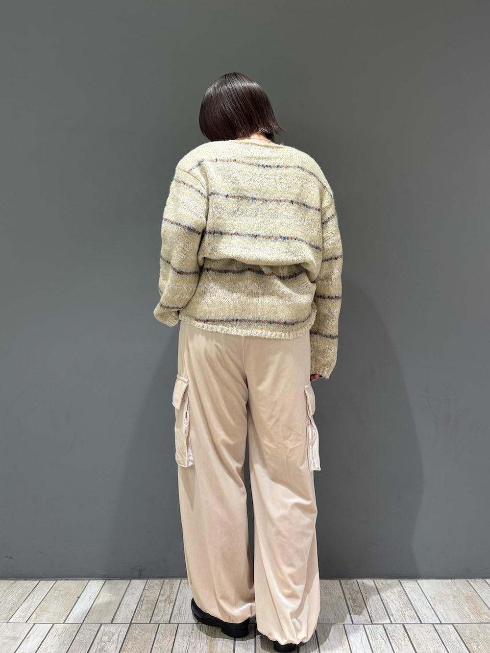 秋らしいベロア生地が大人っぽさと上品さを演出してくれ、カーゴデザインとちょうどバランス良く着ていただける1着に︎︎𓂃⟡.·