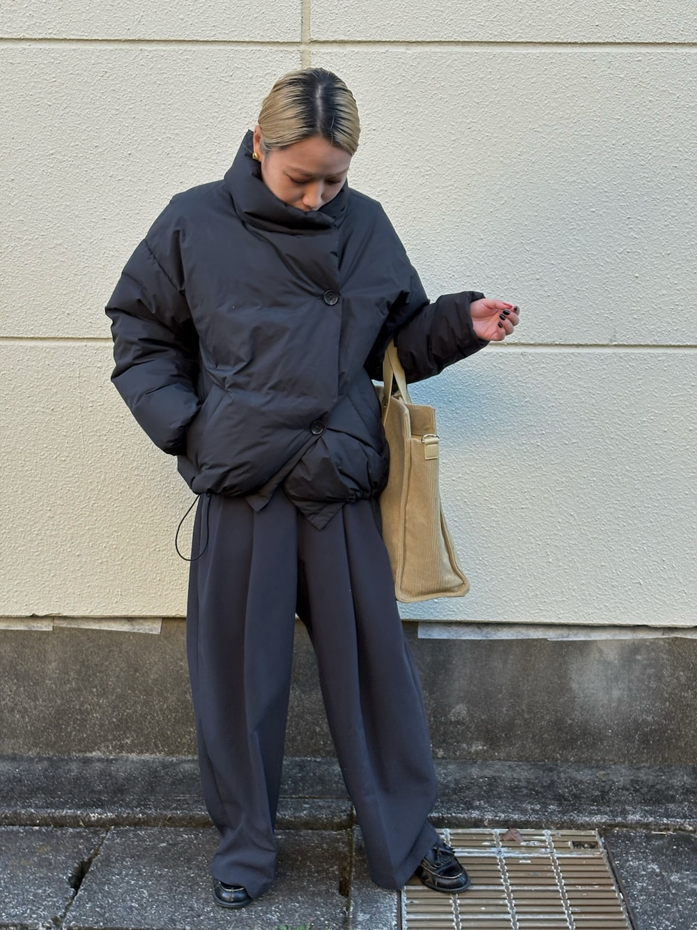 しなやかな肌触りと軽い穿き心地が魅力。穿くとほんのりコクーンシルエットになるのが特徴で、ラフすぎず上品な印象にしてくれます😀🫱
