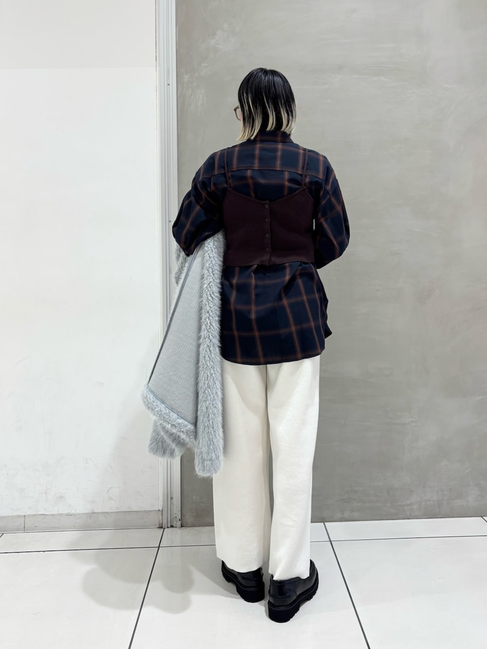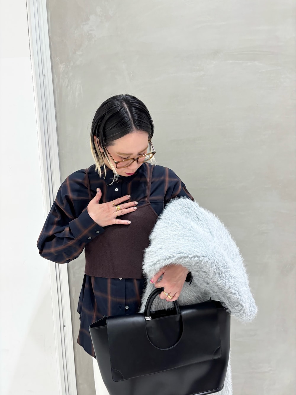 中に着たシャツは柔らかなチェック柄が魅力の、オンブレーオーバーシャツ。
