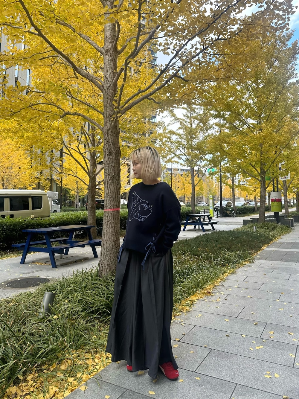 袖口の配色がコーデをオシャレみえさせてくれます🍁
