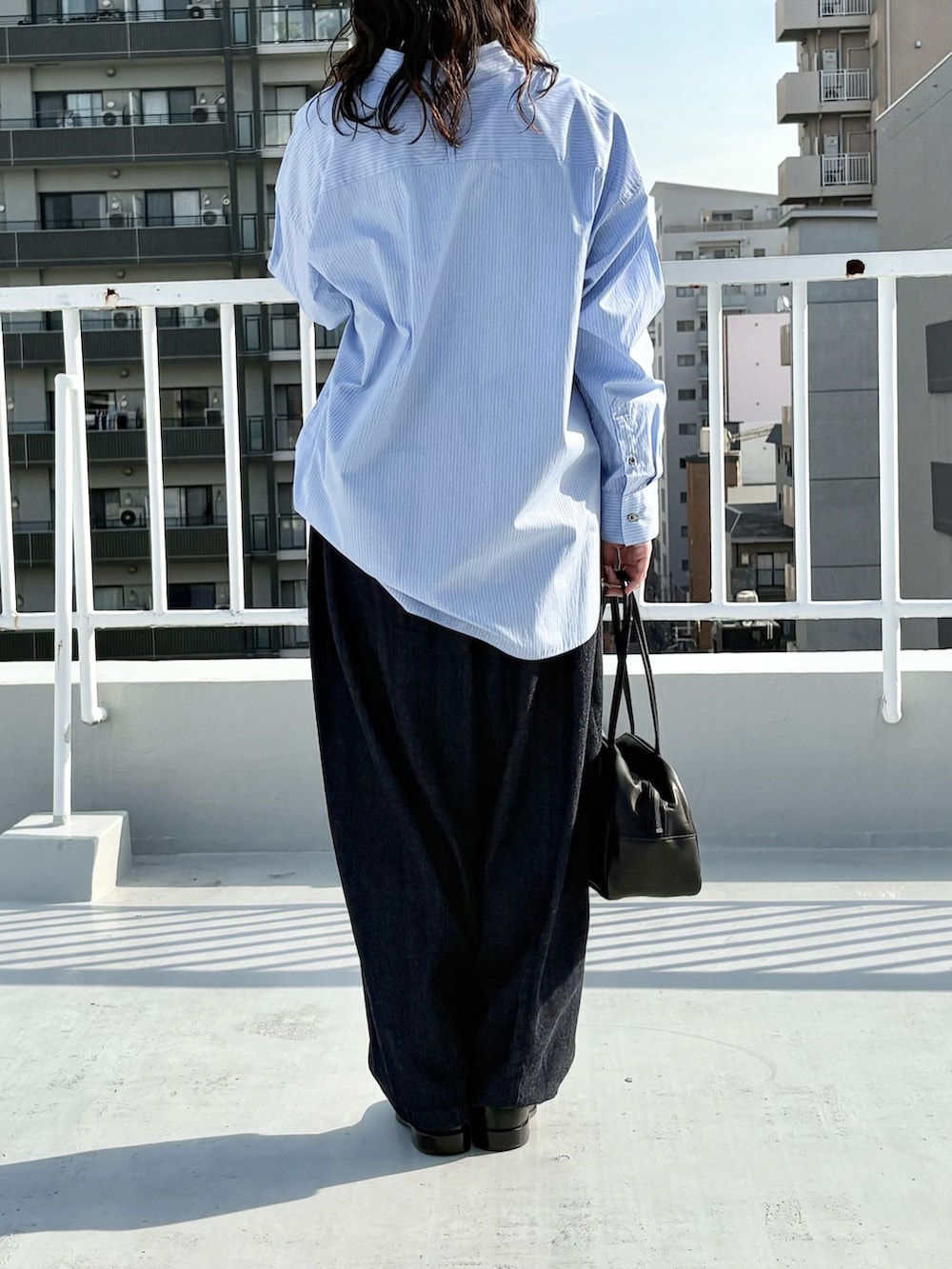 さりげないストライプでカジュアルになりすぎず、色んなコーディネートで着用できそうな、便利なコットンシャツです◎