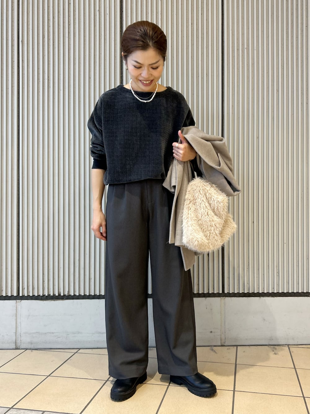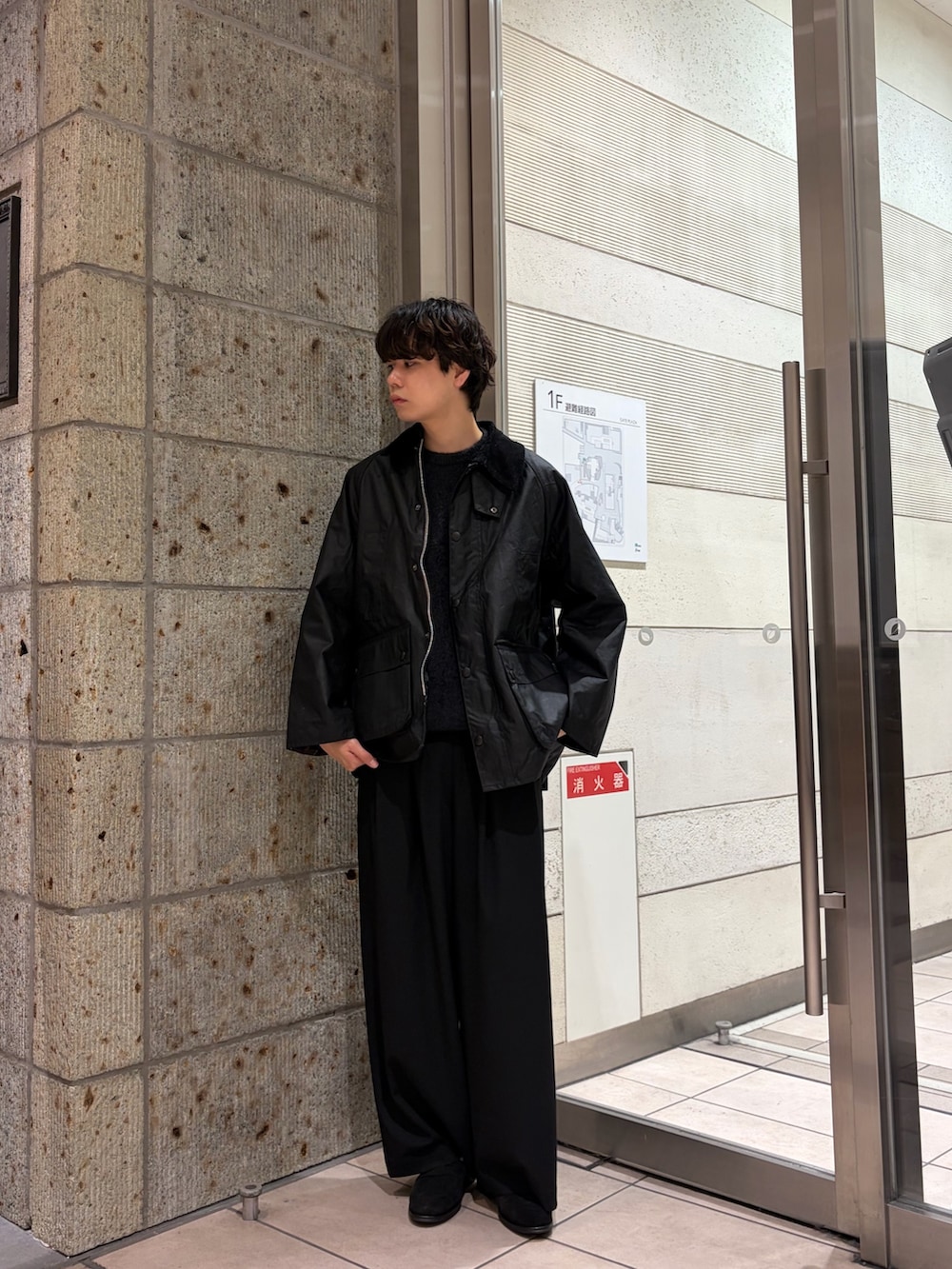 黒ながらウール、シャギー、バブアー、スウェードなど素材で遊んだなかなかなコーデになってるかと!