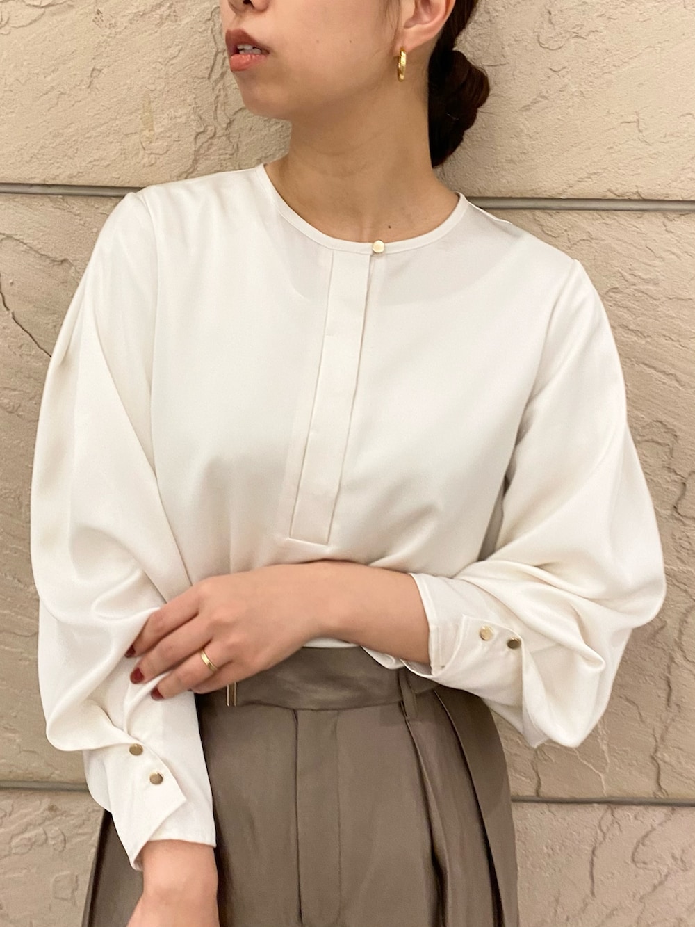 ROSSOピーチサテンデザインスリーブブラウス- カラー: