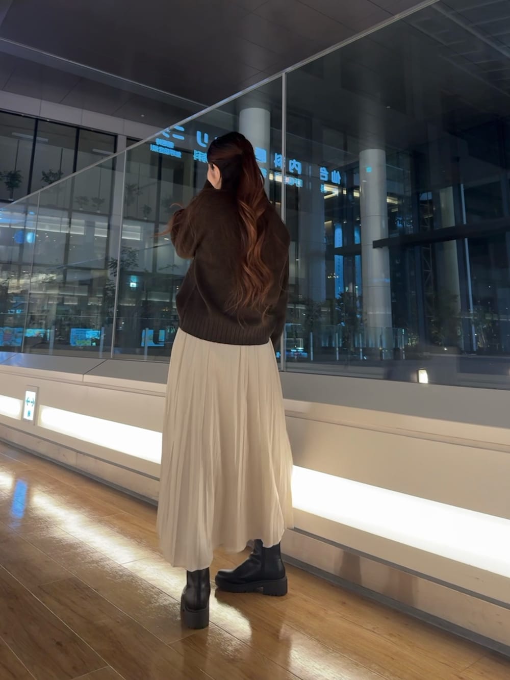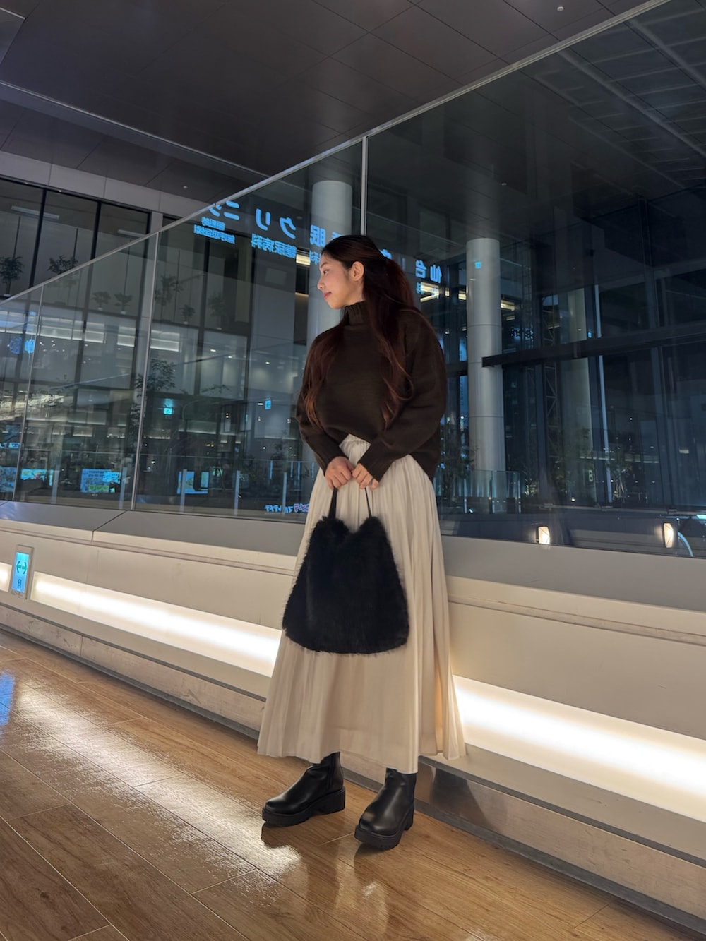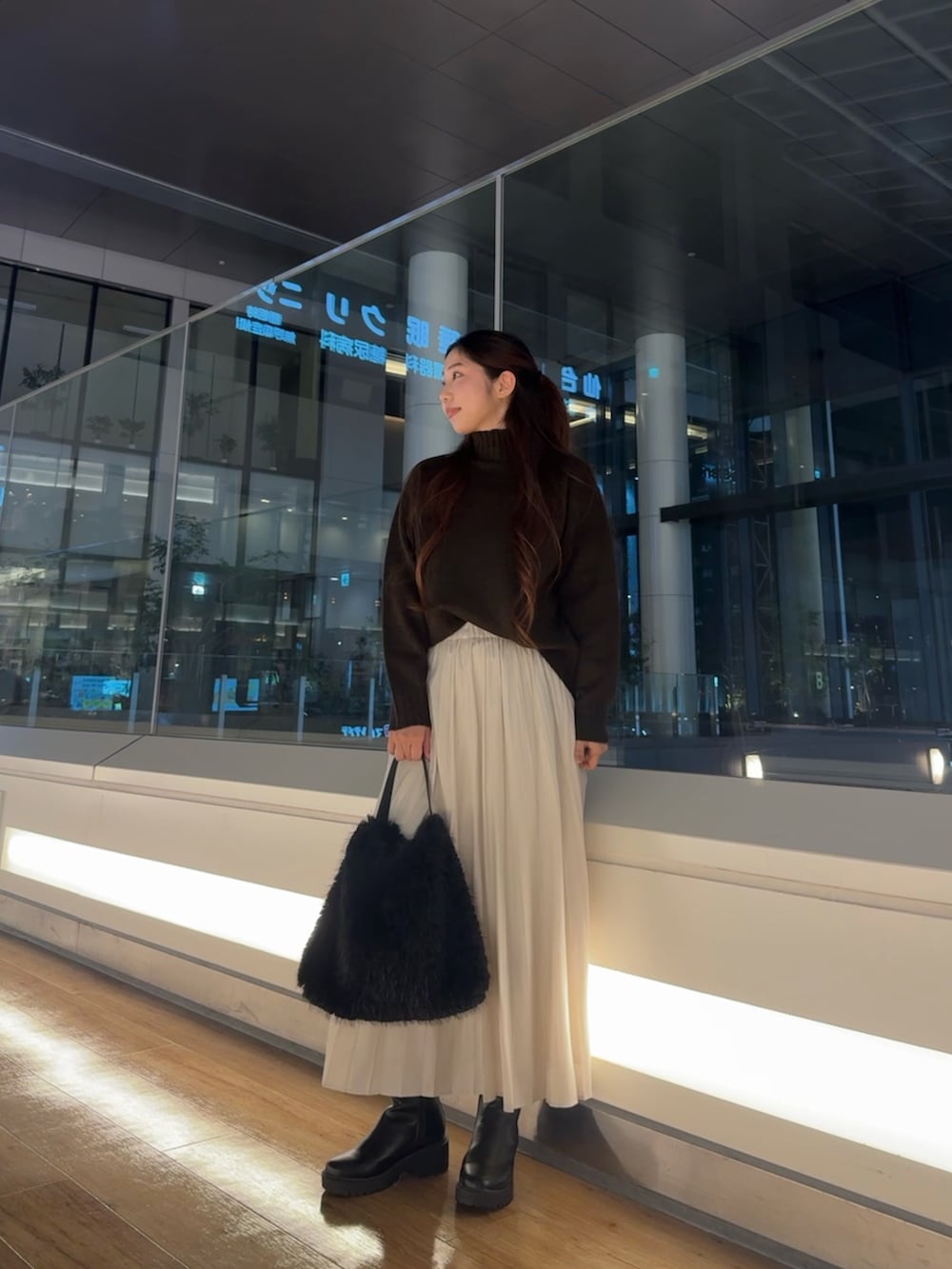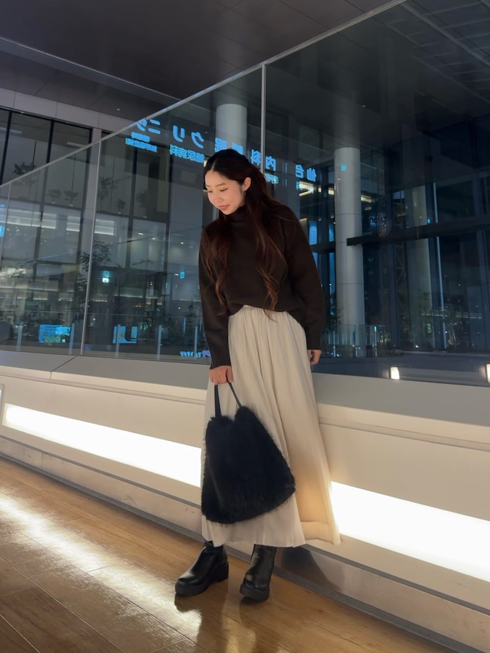 ブラウンニットは首元まで温めてくれるので、これからもっと寒くなる冬の季節にぜひおすすめしたい1着です!
