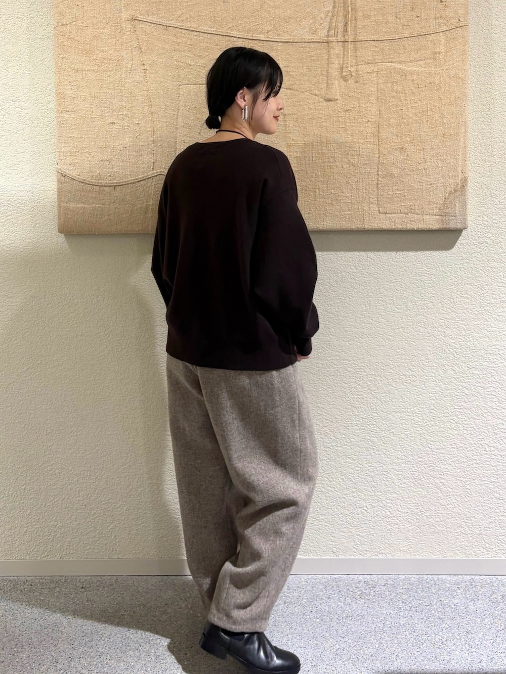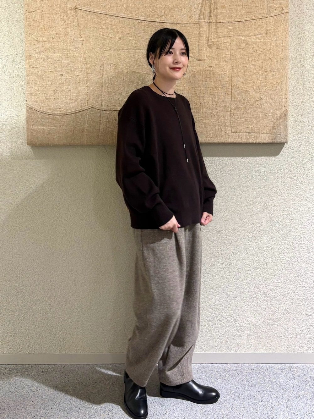 柔らかなコットンカシミヤ素材で、優しい着心地と上品な光沢を両立。ほどよくゆとりのあるシルエットが身体を包み、秋冬のスタイルに落ち着いた温かみをプラスします。単品使いはもちろん、アウターのインナーとしても重さが出ずに活躍します。