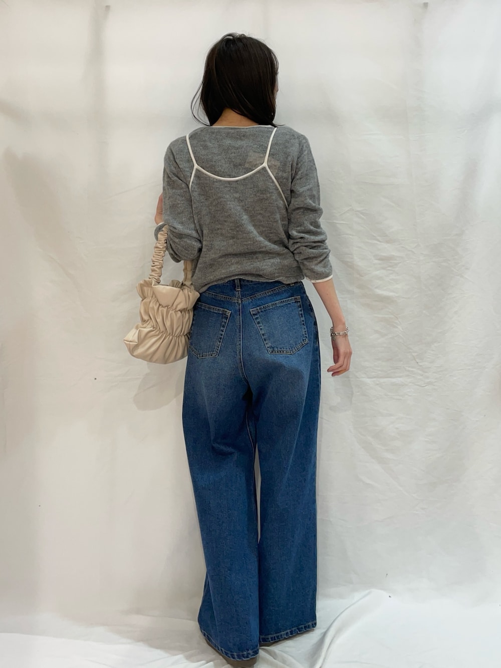 キャミとセットになったトレンド感あるニット🧶バイカラー仕様がおしゃれです◎