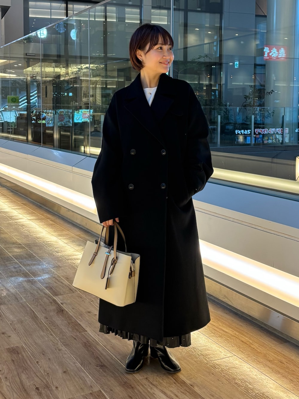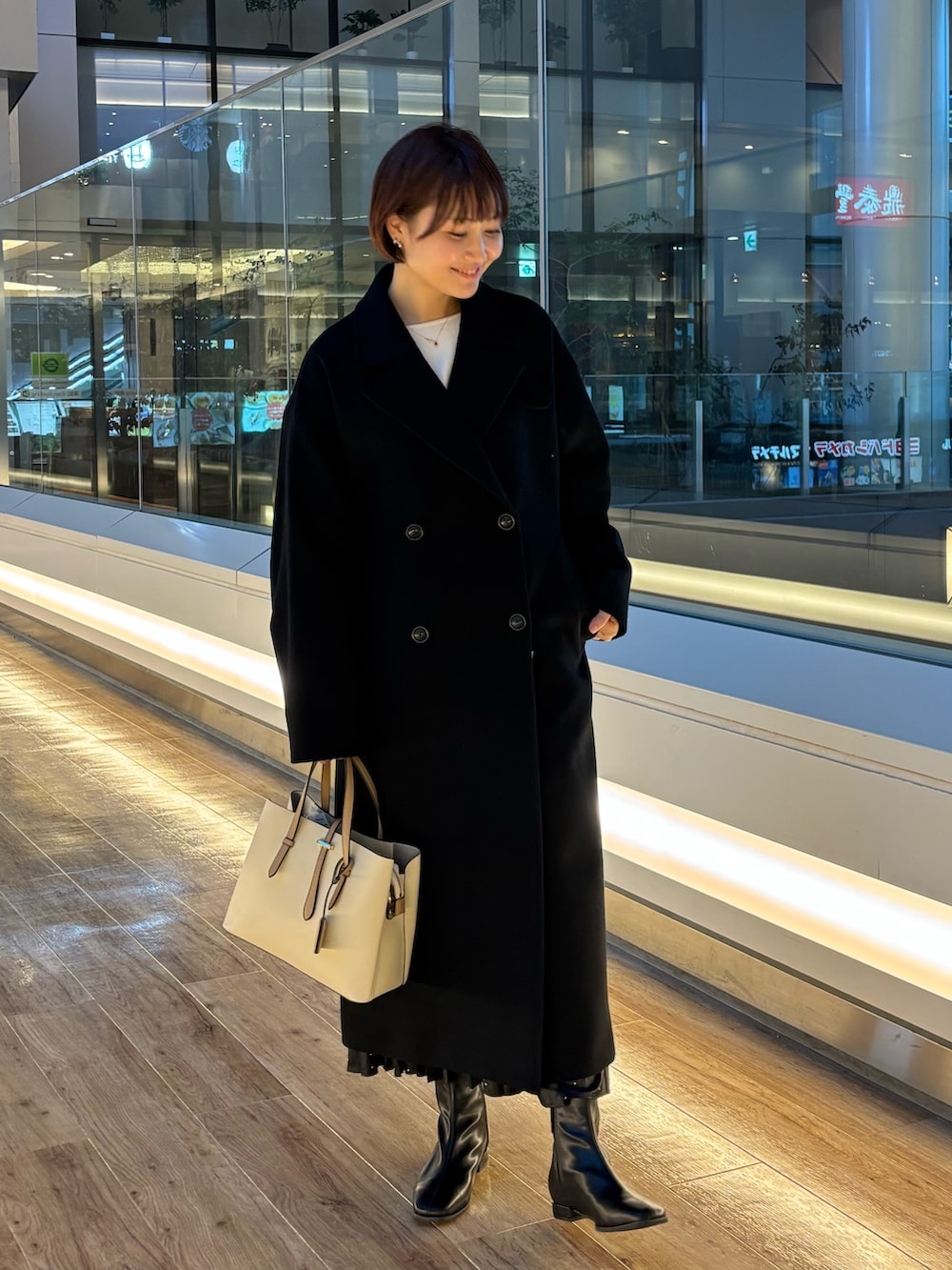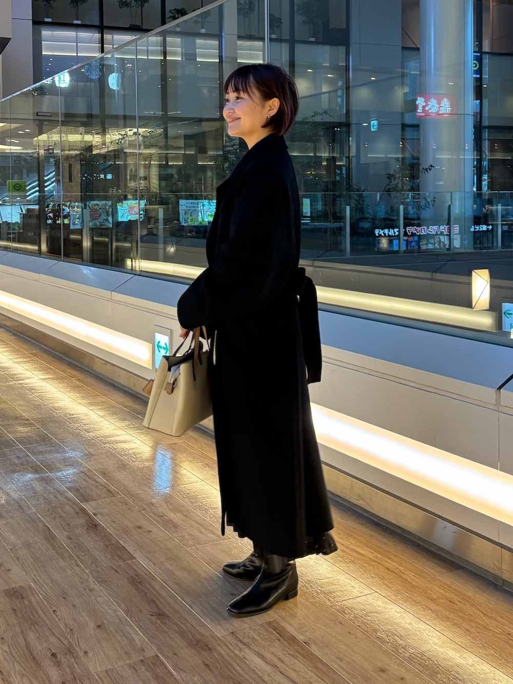 アーバンリサーチのジャケットコート着ています。店頭でもとても人気のアイテムです!サイズは36を着用しています。後ろで紐を結ぶとメリハリがついてより女性らしい印象になりますよ☻