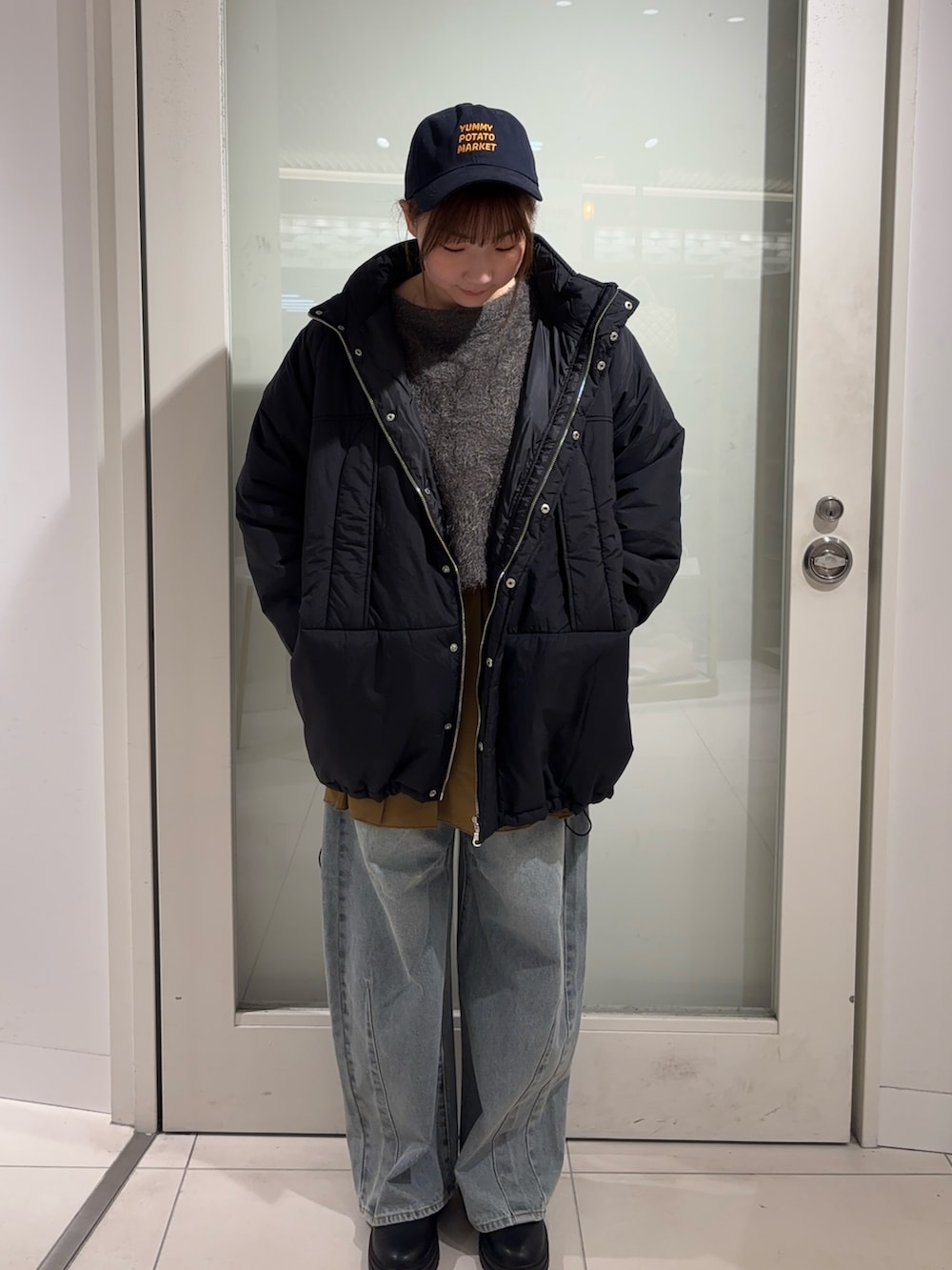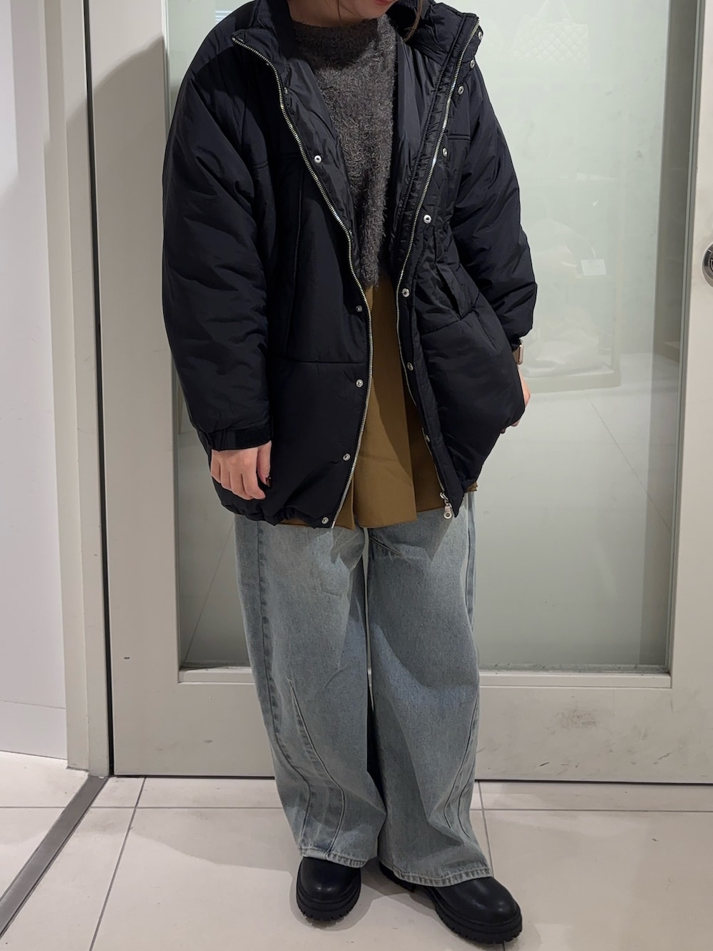 URTECHのアウターはとても軽くて暖かいです!長めのニットも隠れる丈間なのが◎