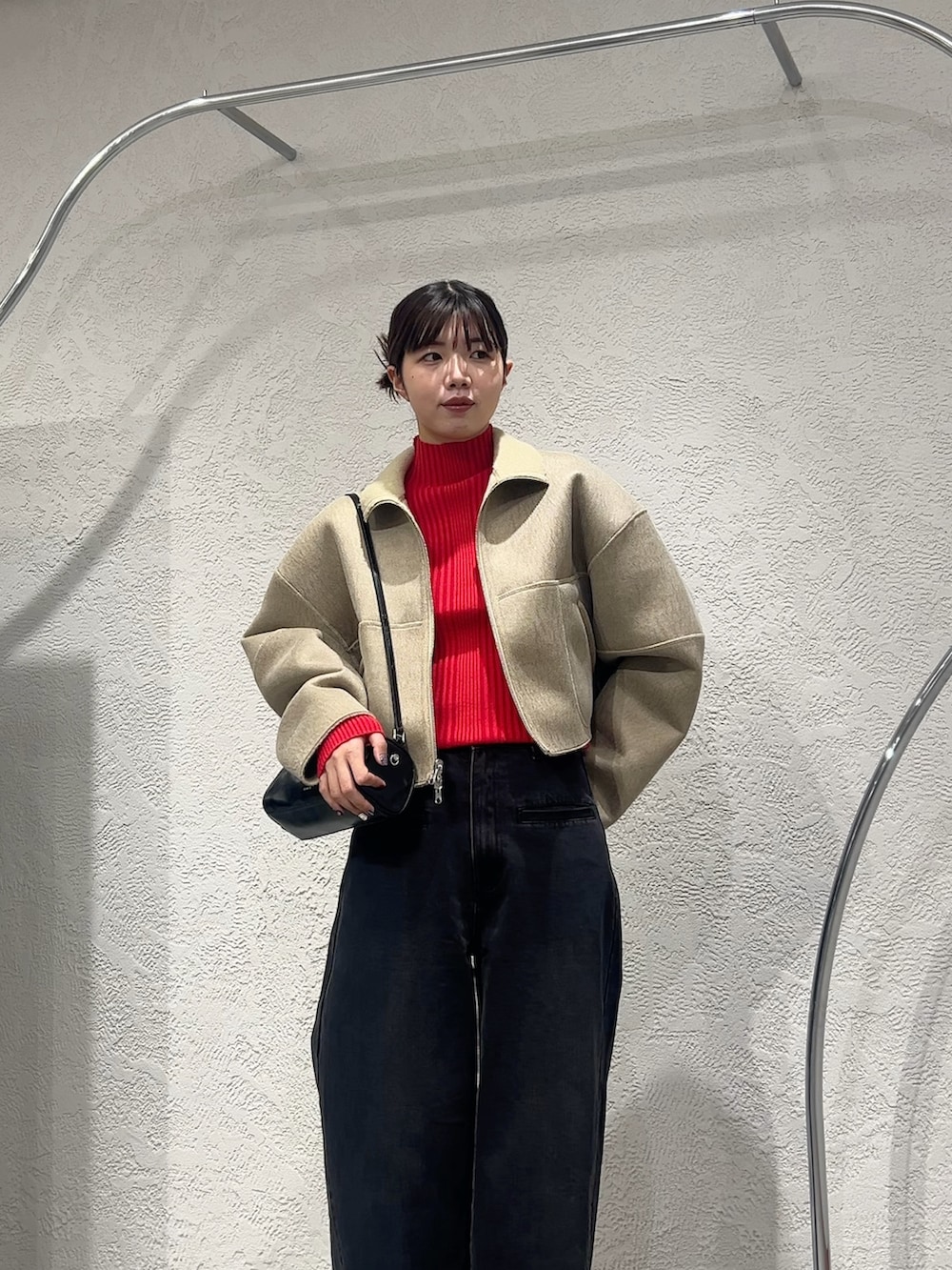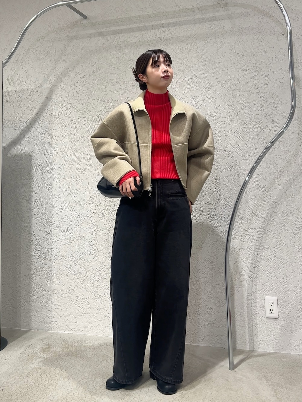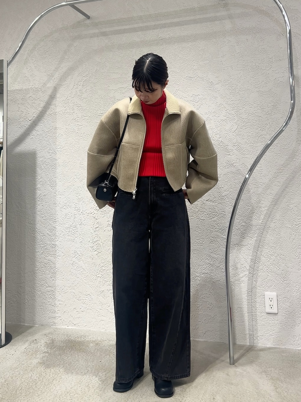 アウターをベージュで合わせ、そのほかをブラックで落ち着いた印象にすることで大人っぽく着こなすことができます!