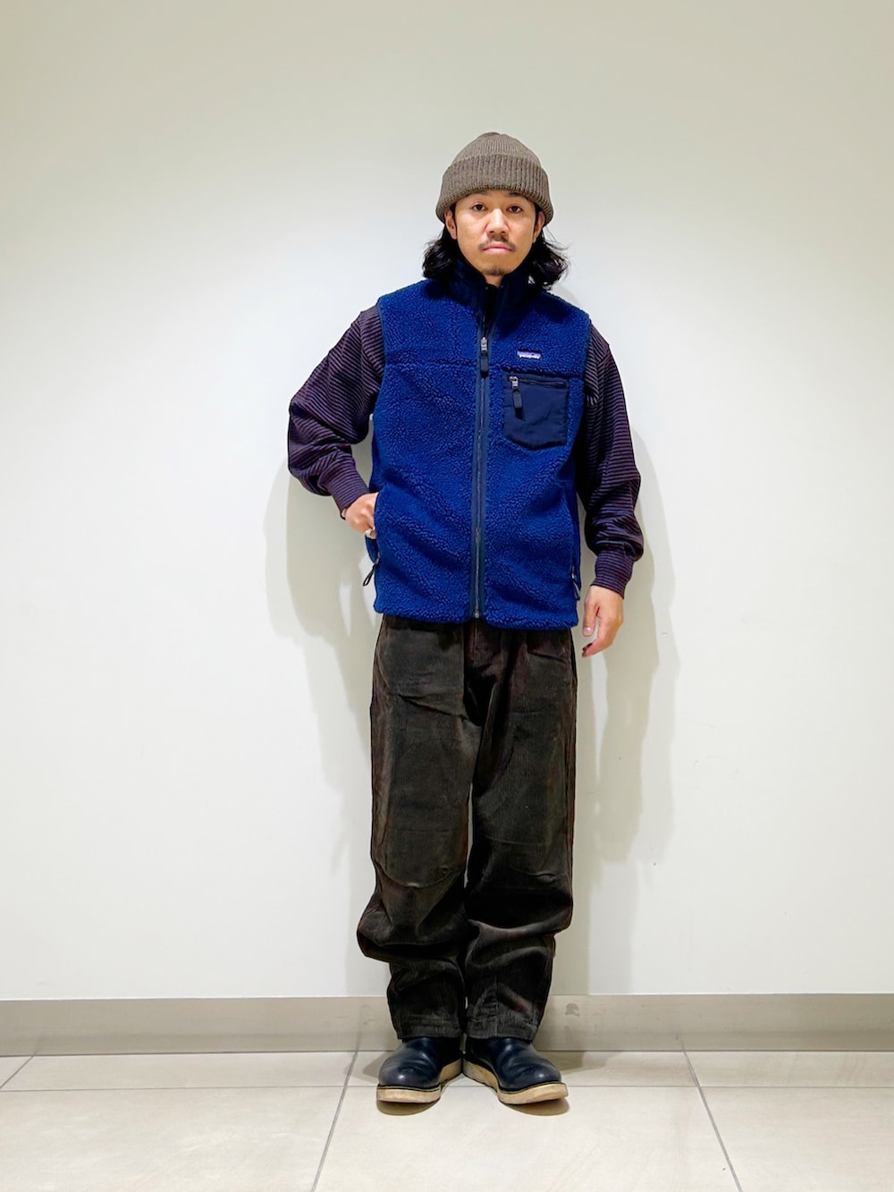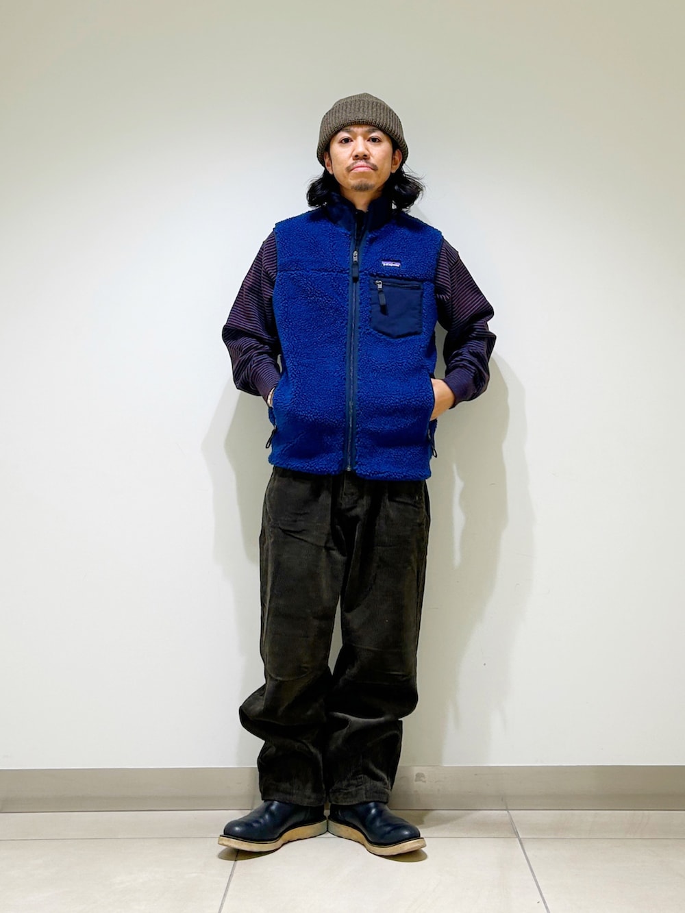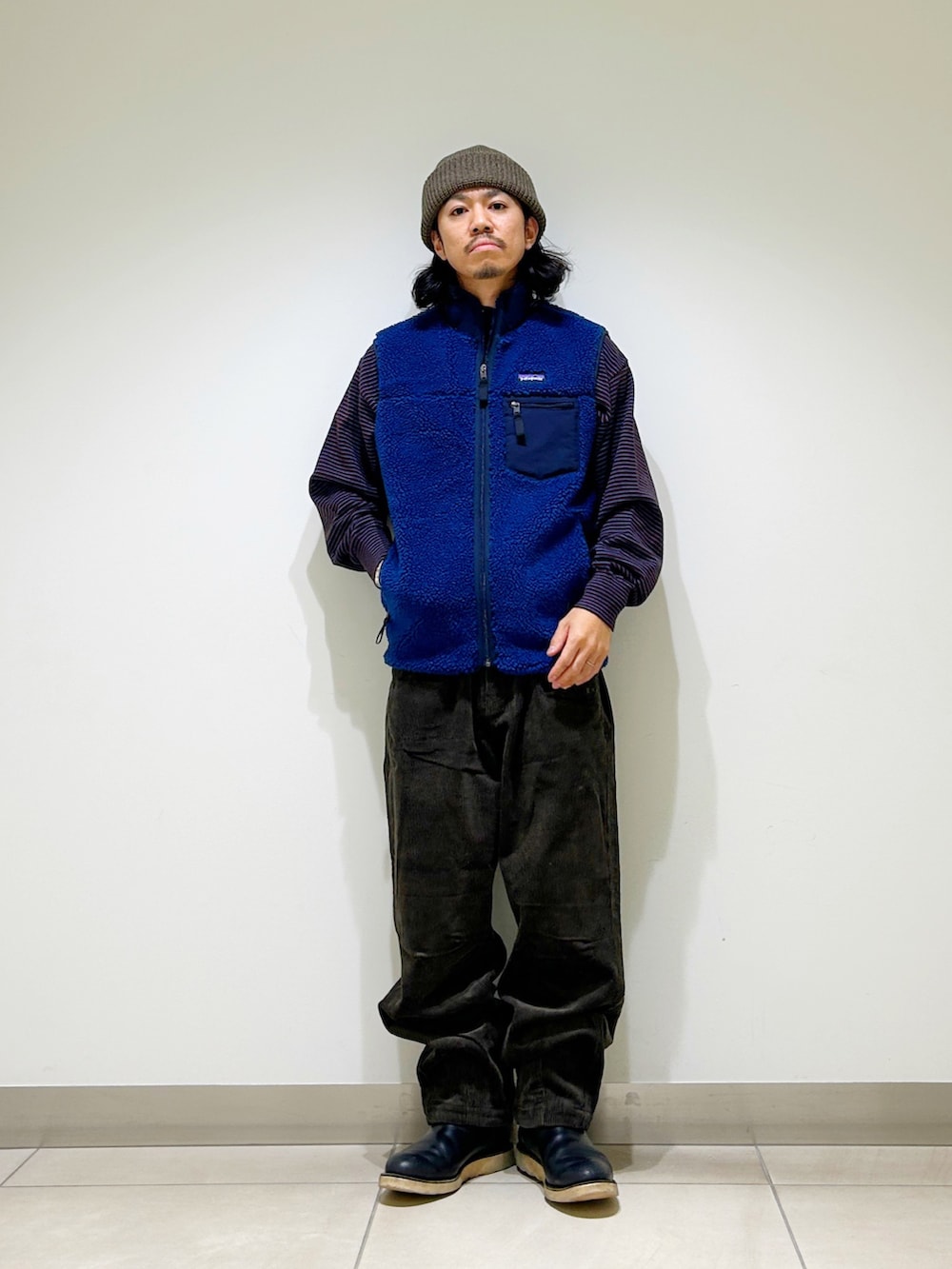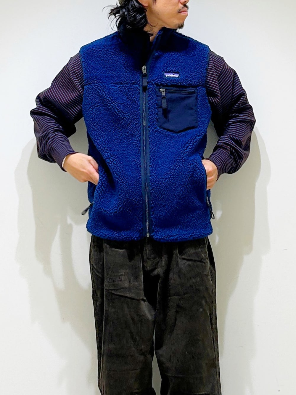 パタゴニアのアイコン的アイテム、クラシックレトロXベストです。毛足の長いフリース素材が、見た目にも温かく、優れた保温性を発揮します。襟やジップポケットの縁取りが、デザインのアクセントになっています。