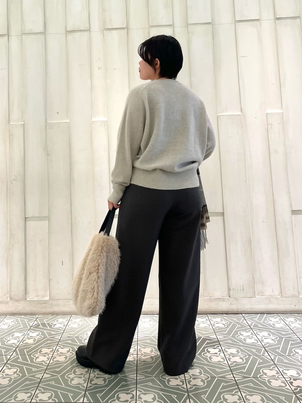 前が短く後ろが長いシルエットなのでワイドパンツやスカートとも相性抜群です!