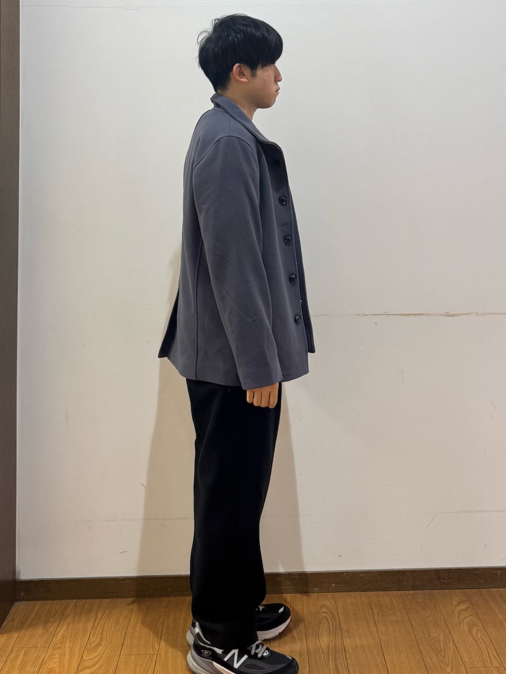 今回はキレイ目を目指していたので、スラックスを組み合わせました。よりカジュアルにするのならばカーゴパンツと組み合わせていただくととても相性がいいです!