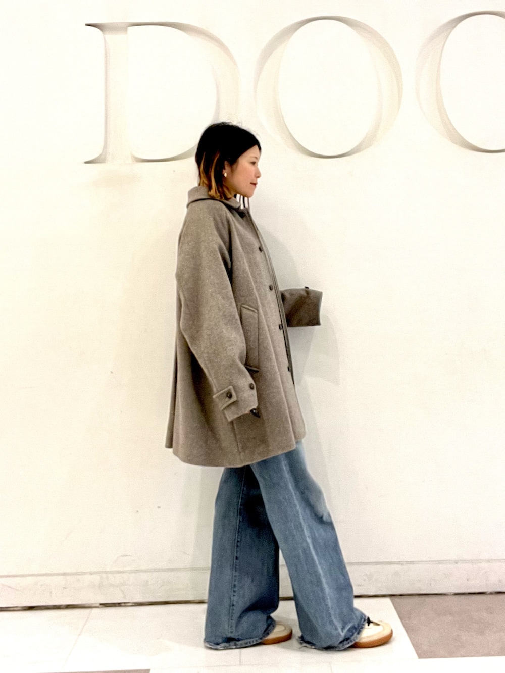 かぐれのウールバックタックショートコートはカシミヤ混で柔らかい肌触りです◎裾に向かって程よく広がるシルエットが女性らしいデザインです🧣