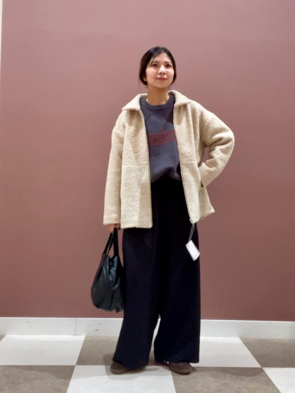 短めの丈なのでバランスよく着て頂けスカート、パンツどちらでもあわせやすいです!