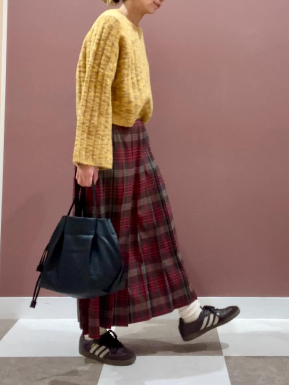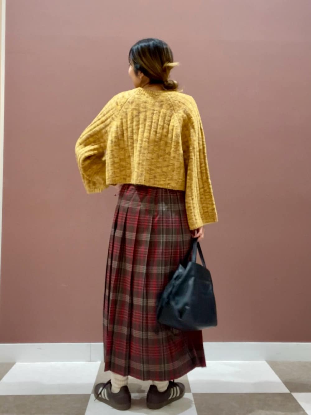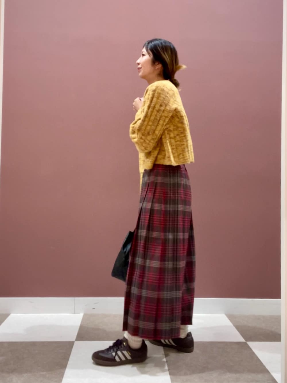 落ち着いた赤の色合いが可愛いチェックスカート✨
