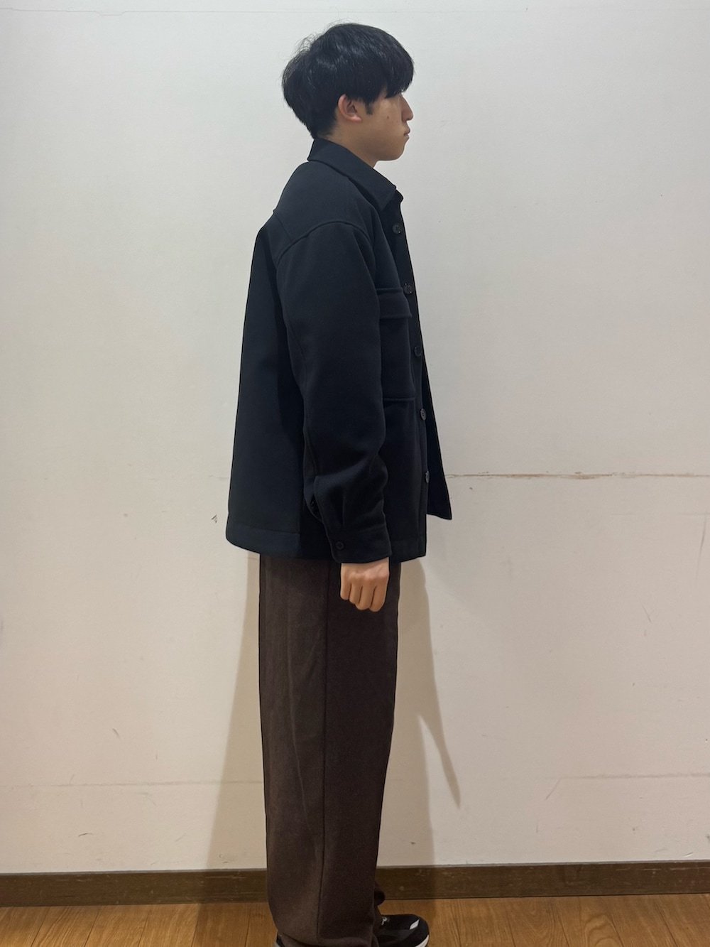インナーは柄物のため、アウターを脱いでもおしゃれにみせられます。身幅少し大きめです!