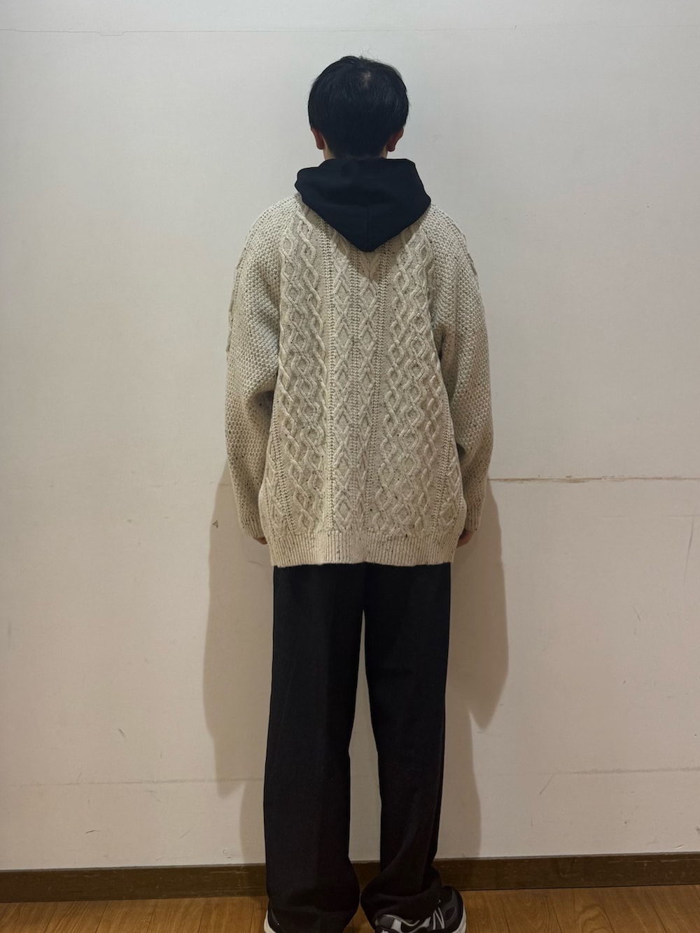 ウールのボタンカーディガンにウールパンツを組み合わせてカジュアルにいたしました