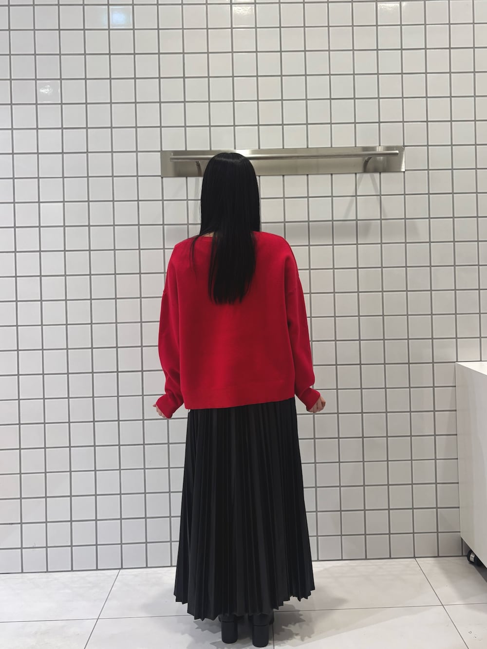 黒のプリーツスカートと合わせることで、甘すぎず落ち着いた雰囲気に。ゆったりしたシルエットが心地よく、休日のおでかけにもぴったりな“ゆるかわ”スタイルです💘
