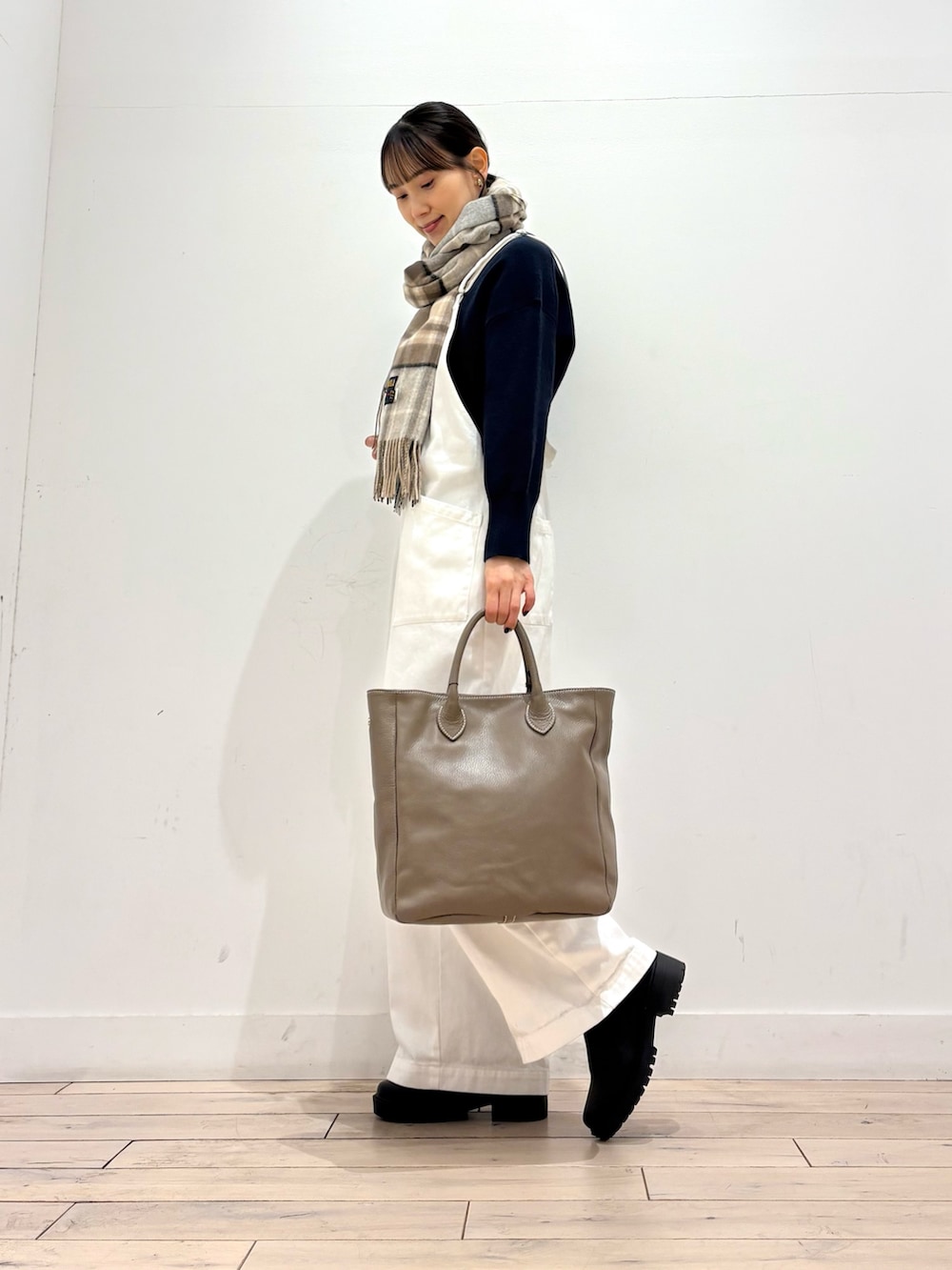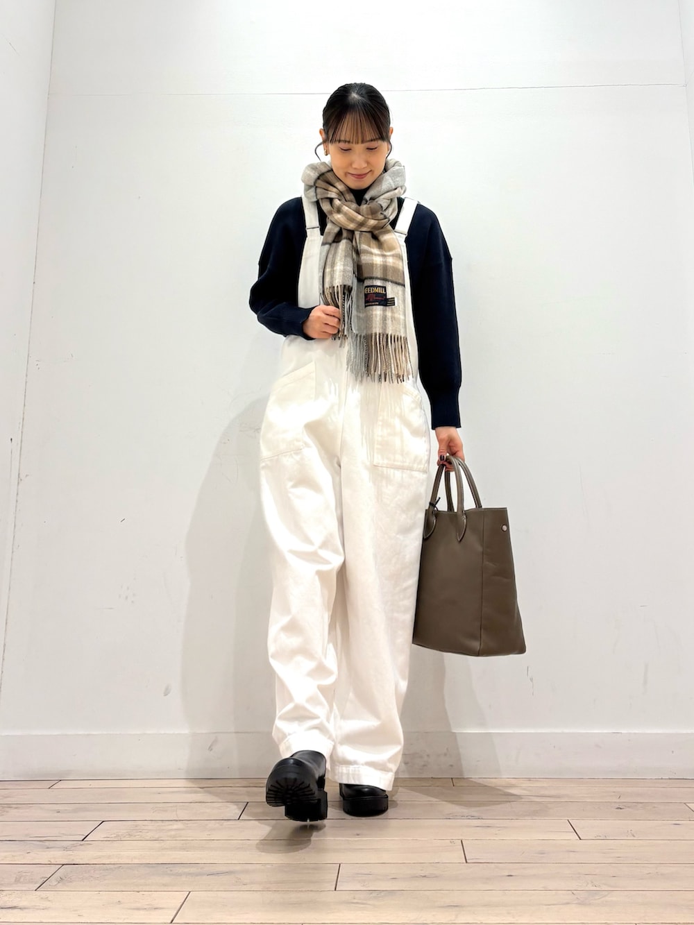 今日はボトルネックのニットとチェックマフラーを合わせて冬らしいコーディネートに^ ^