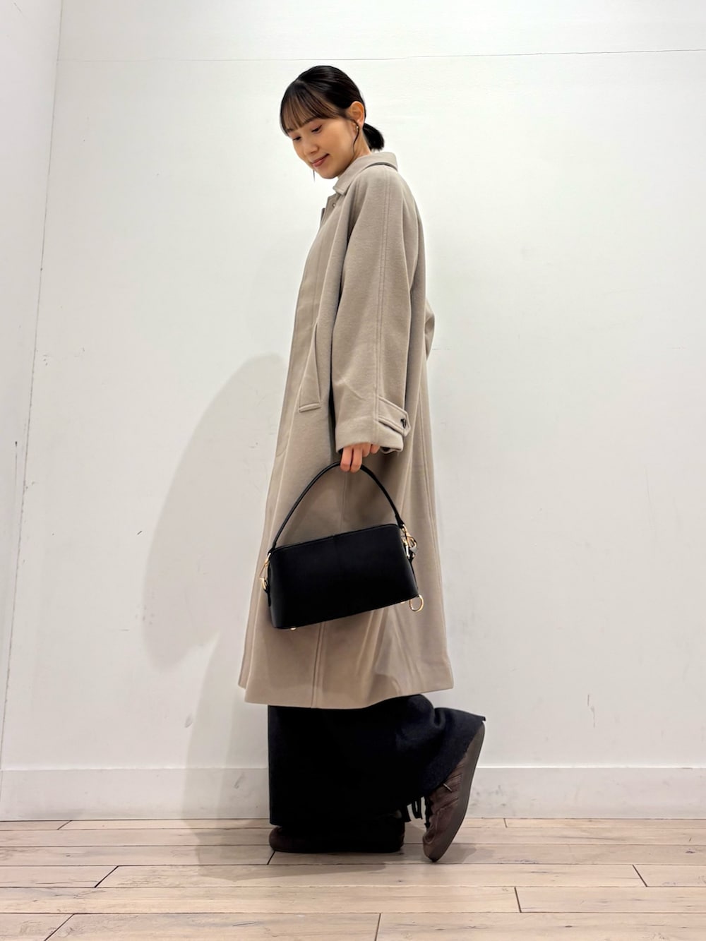 しっかり長さのある丈が羽織るだけで雰囲気のあるコーディネートに👏