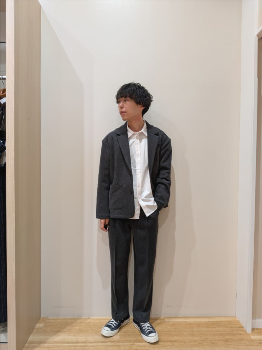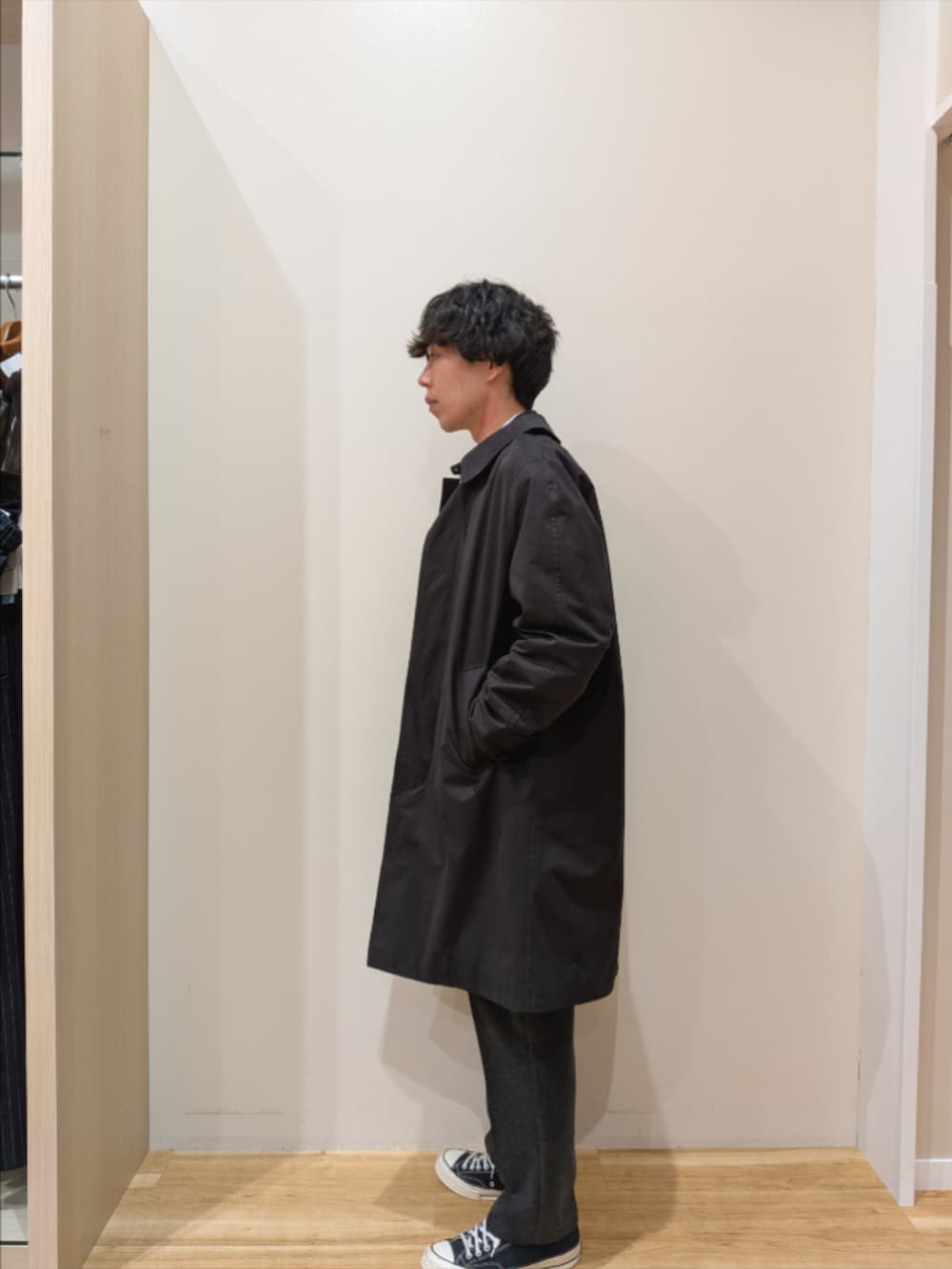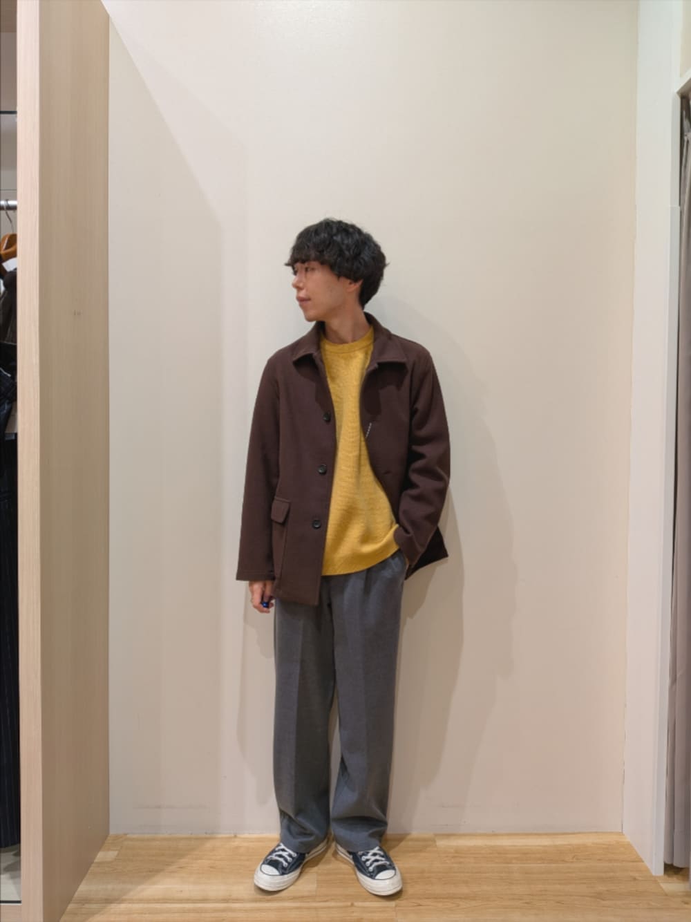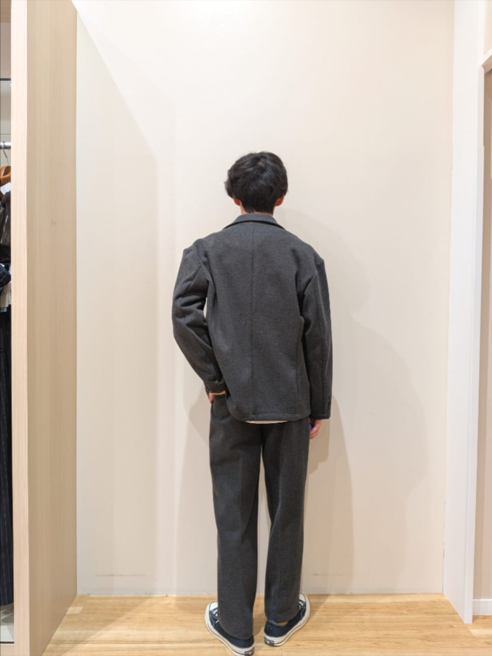 セットアップ×ロングコートの綺麗目スタイルになります。