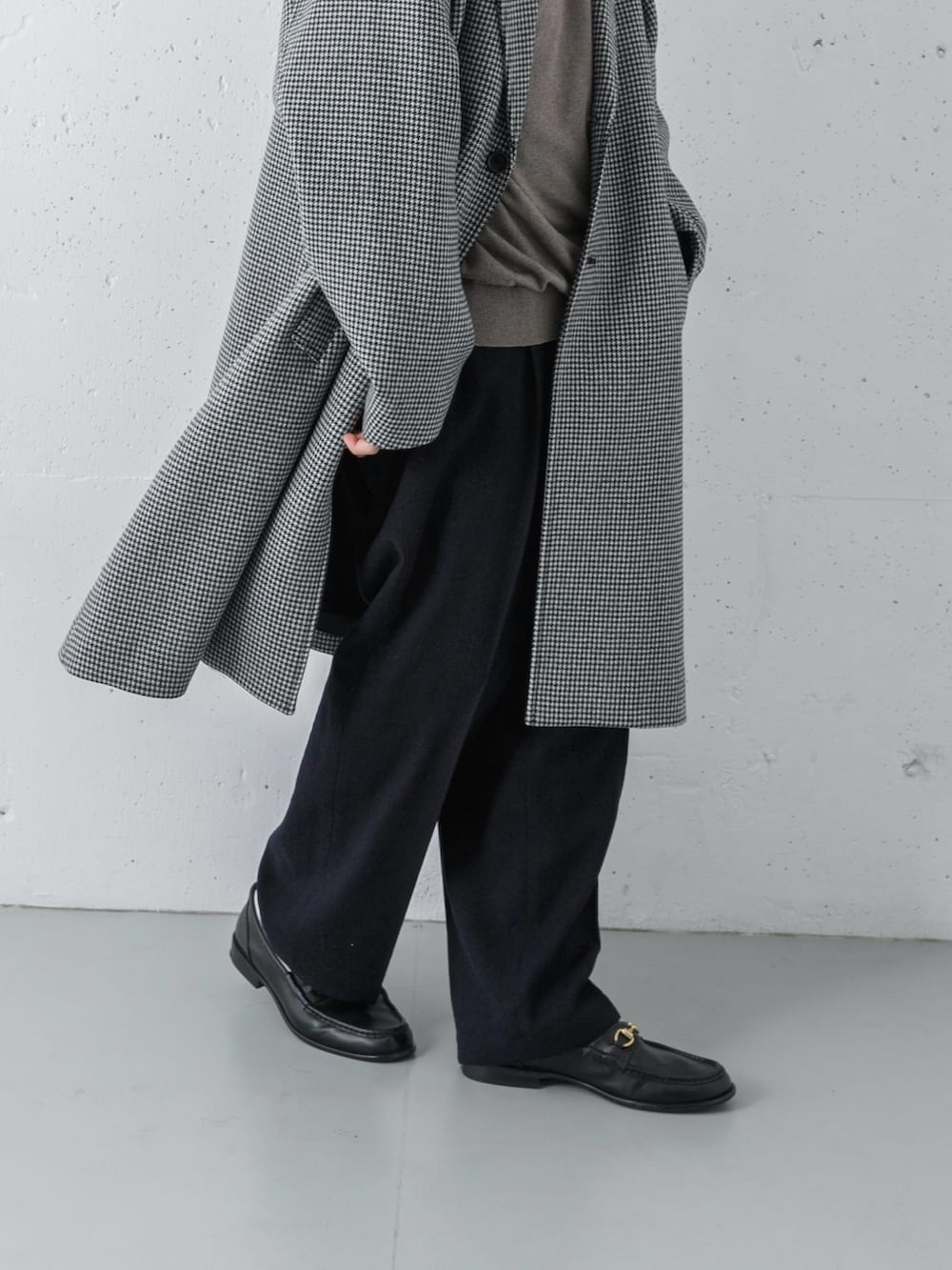 コートは膝下まで長さがあり、ワイドですがきれいめな印象になります。