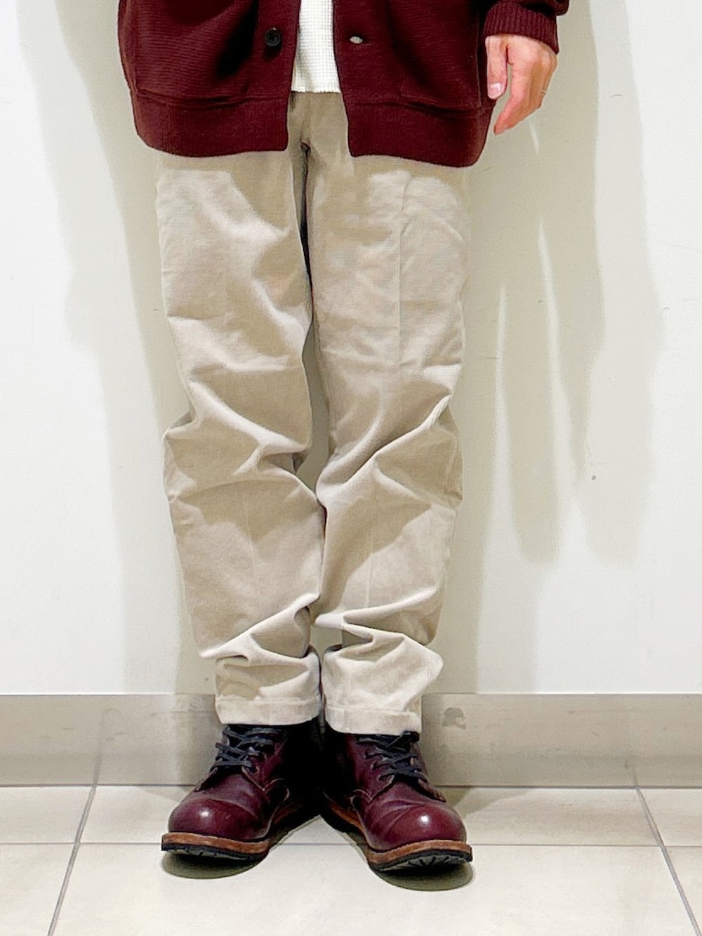 シンプルなアイテムなので合わせるアイテムは問いません。カジュアルなデニムやカーゴパンツ、チノパンはもちろんのこと、きれいめなトラウザーとも相性よく合わせていただけます。