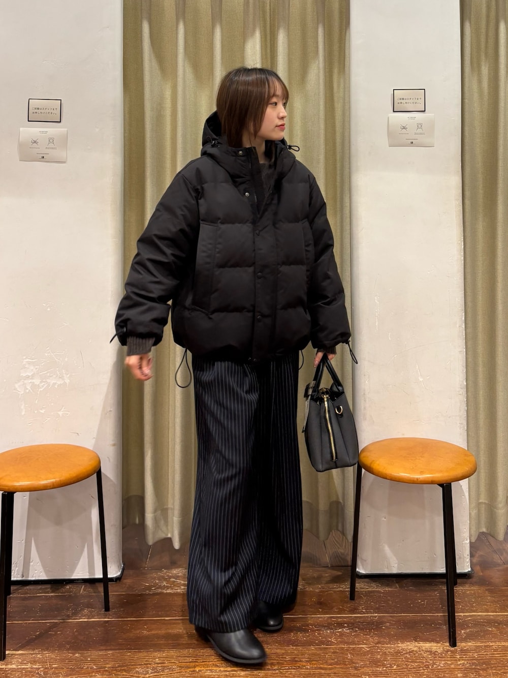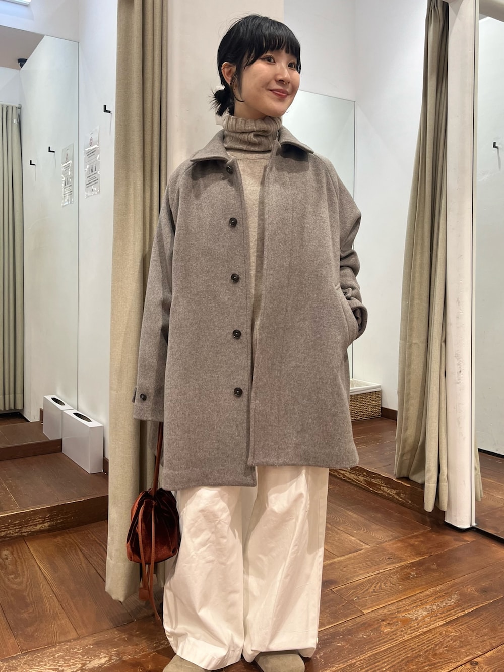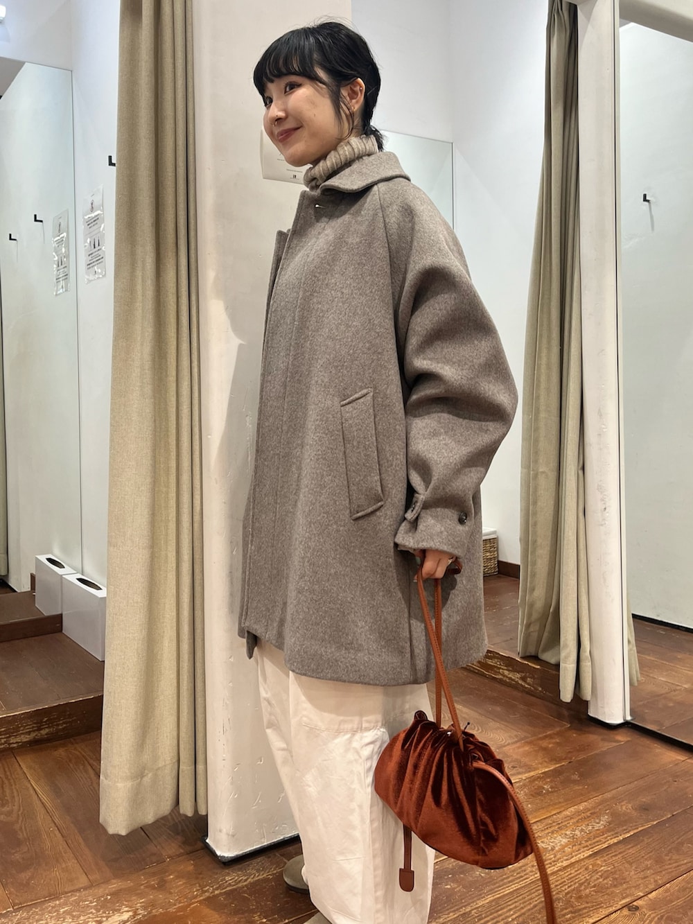 ニットと同系色のウールバックタックショートコート。ざっくり入ったタックが女性らしいスタイルにしてくれて可愛いです🧥