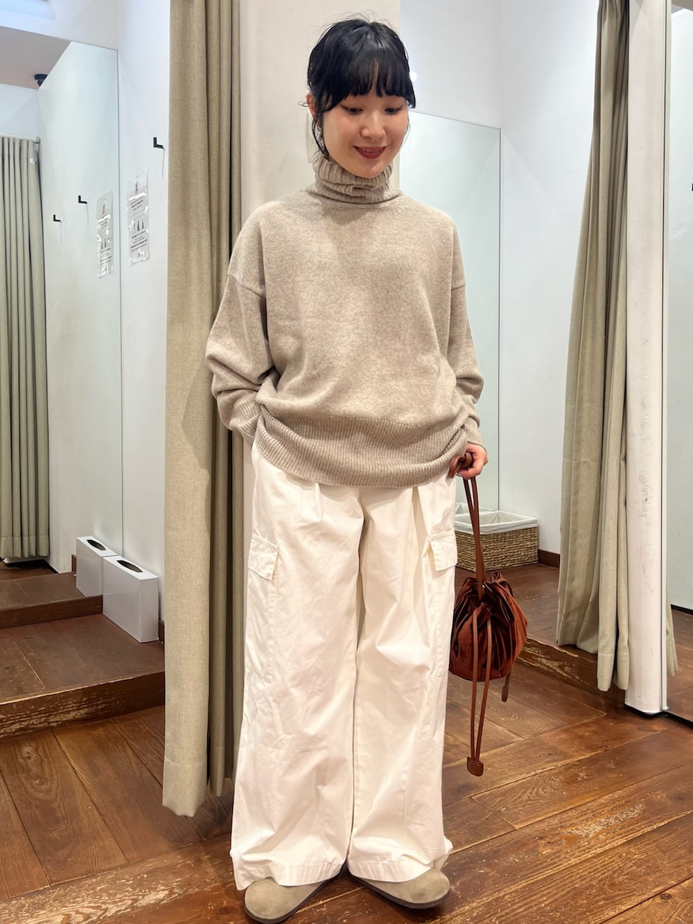 ベージュ×ホワイトのワントーンで爽やかなコーデはいかがでしょうか。