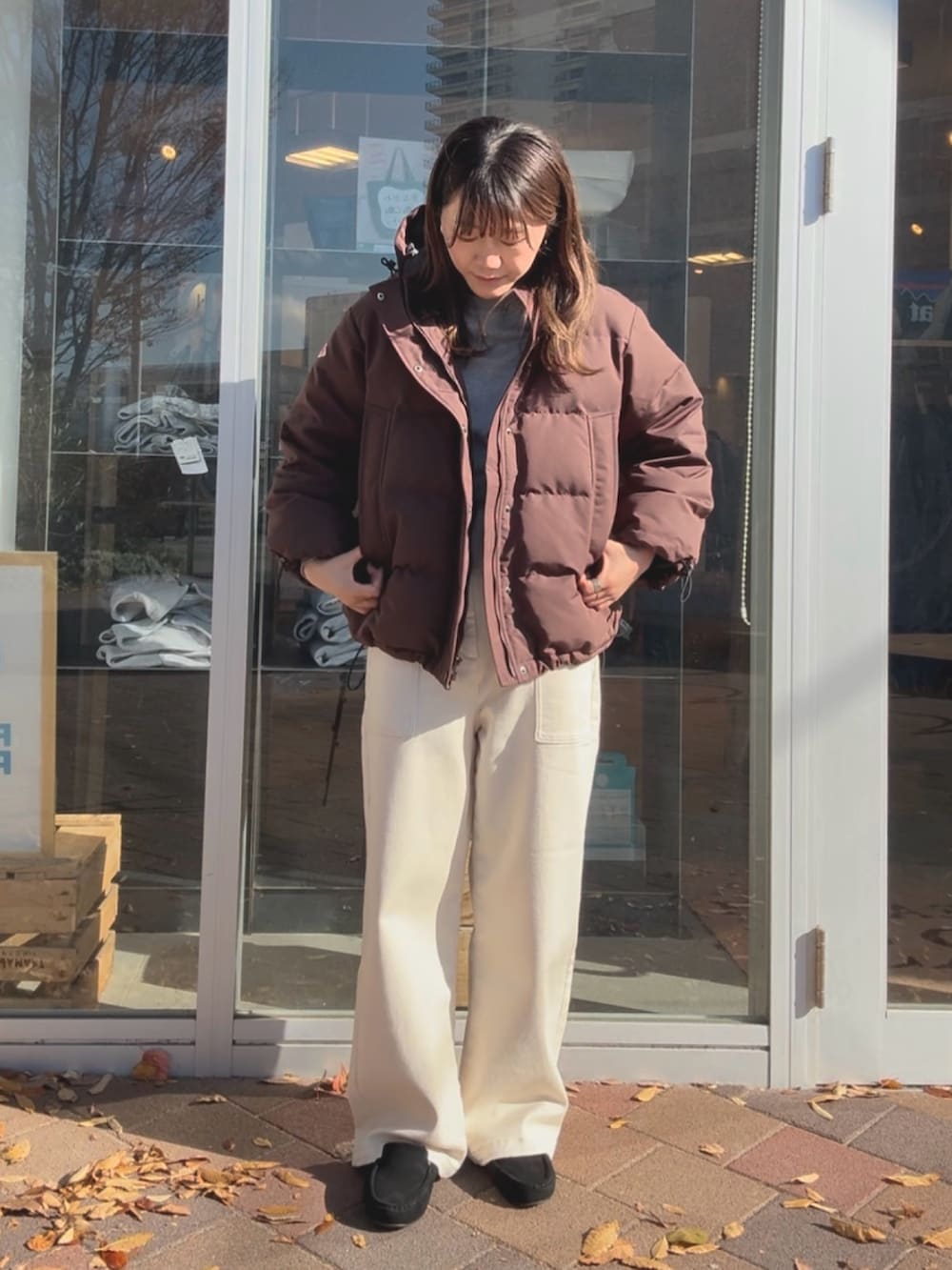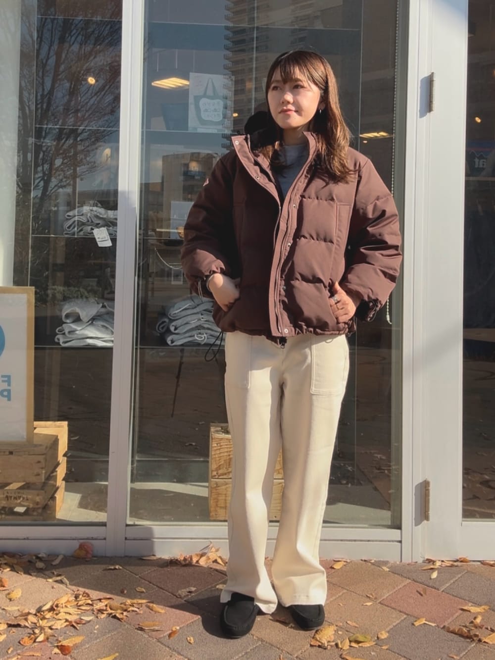 マットぽい質感なので、カジュアルでもきれいめでも使いやすいアウターです◎