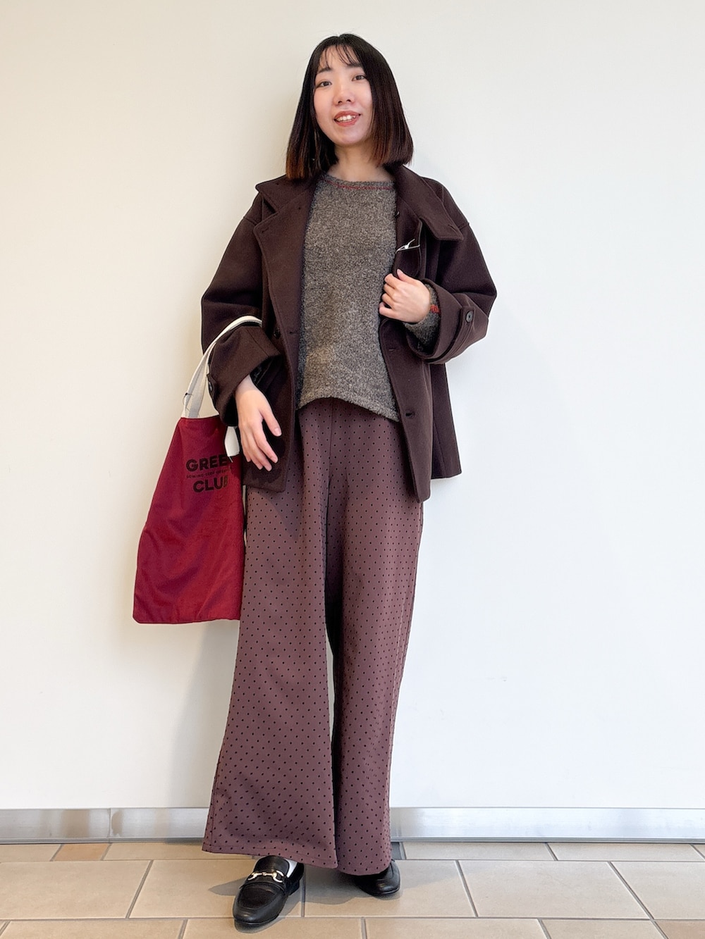 ボトムにはドット柄が可愛いワイドパンツを合わせました!ウエストゴムで楽ちんです〜♩