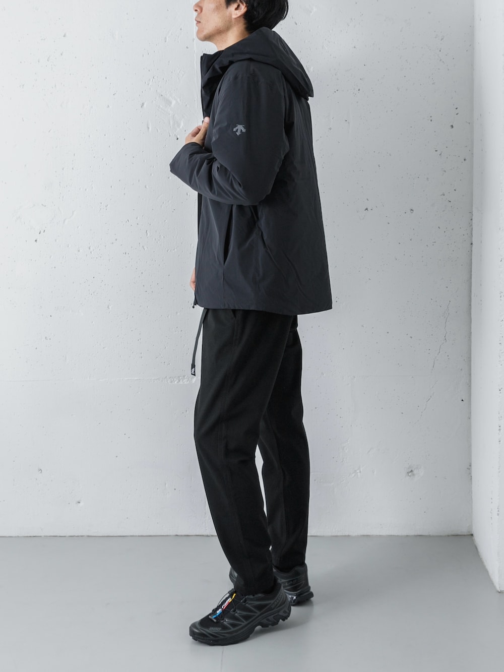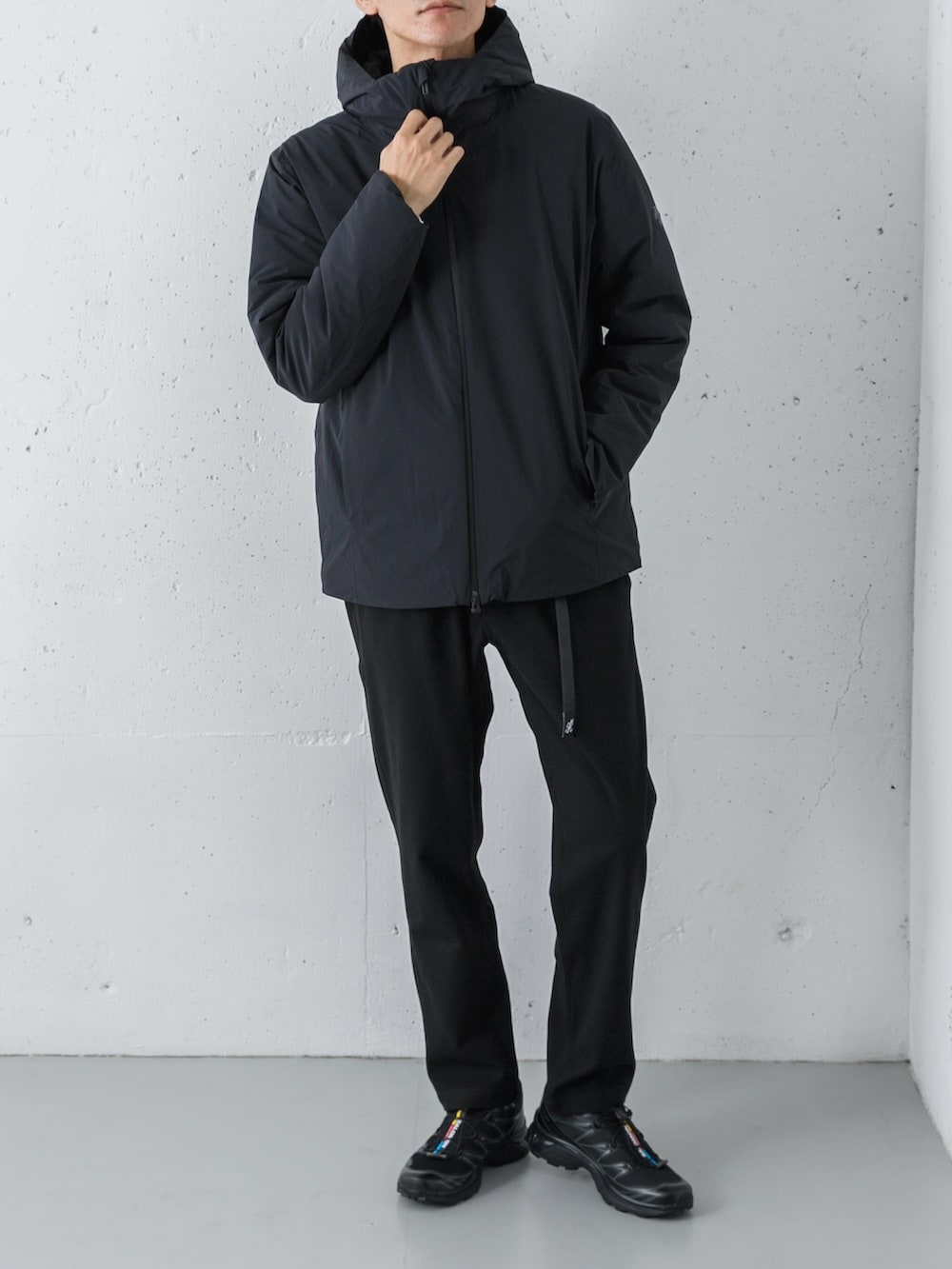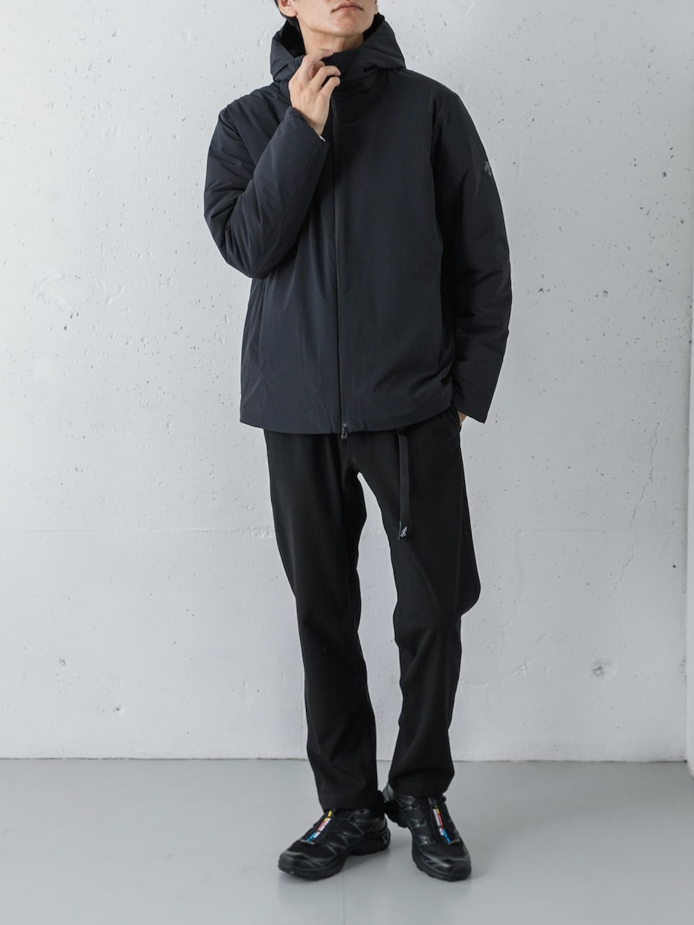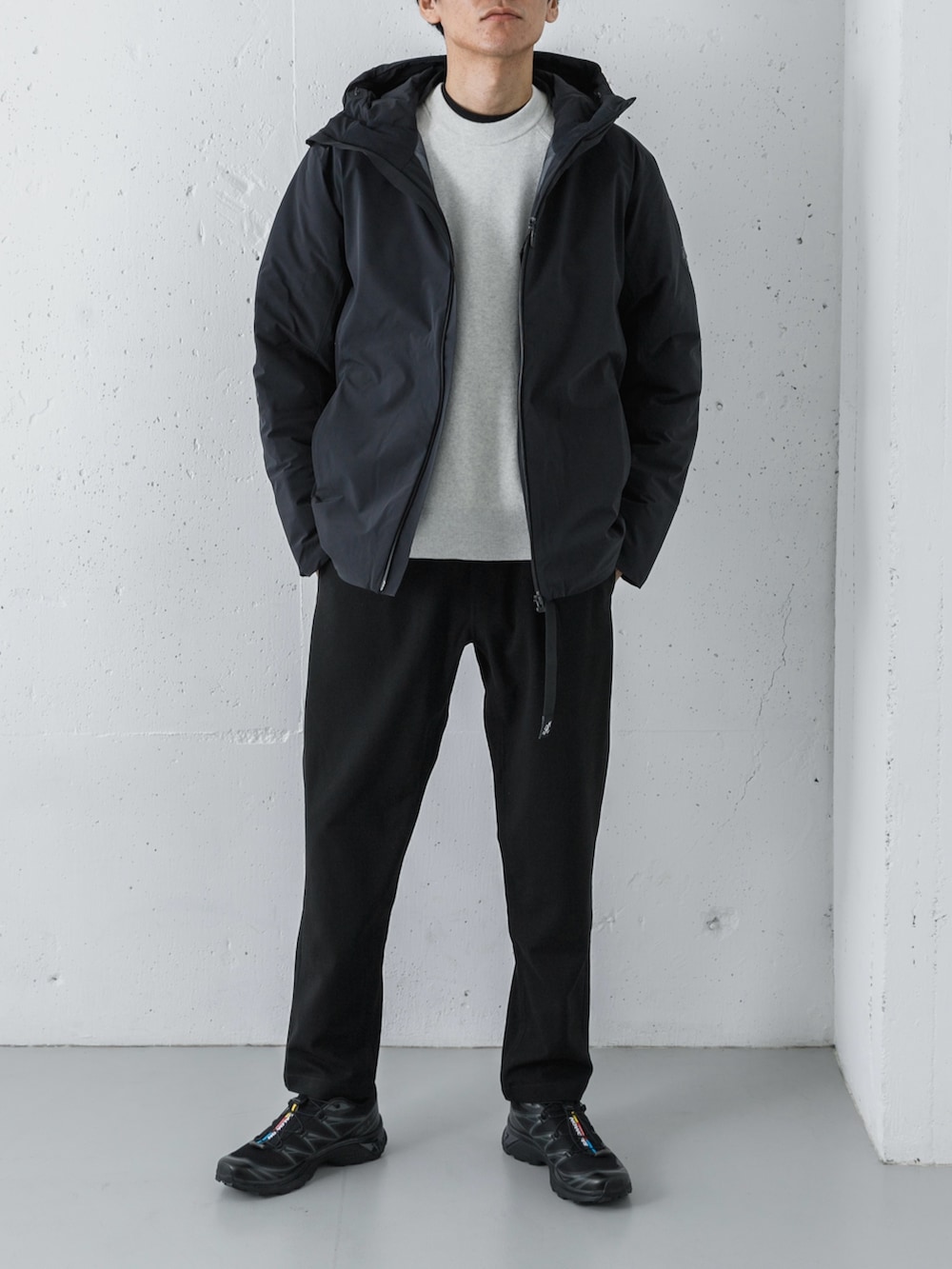 ボトムスにはGramicci別注のウールライクなパンツを選び、機能的なアウターを品の良さで引き締めます。