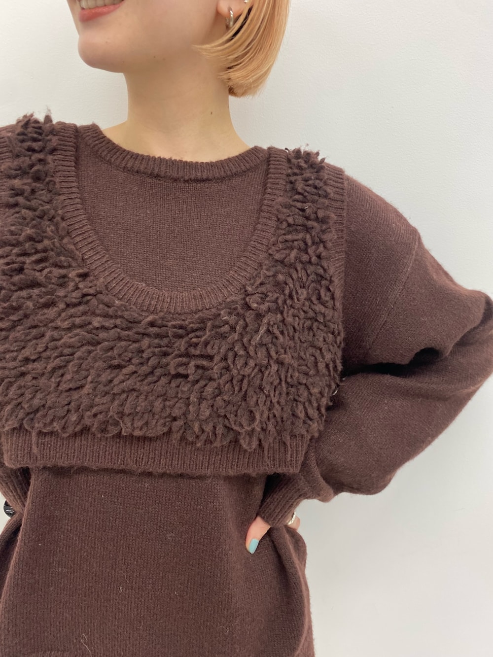 柔らかな毛足と豊かな表情が魅力のニット。