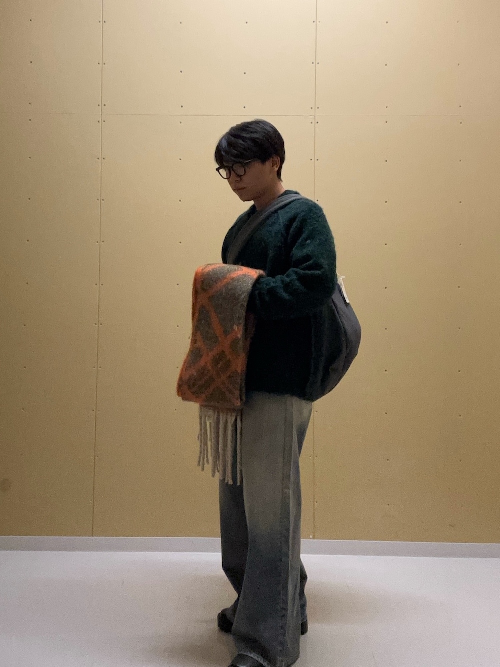 SENSE OF PLACEラインチェックボリュームマフラー- 着用カラー: