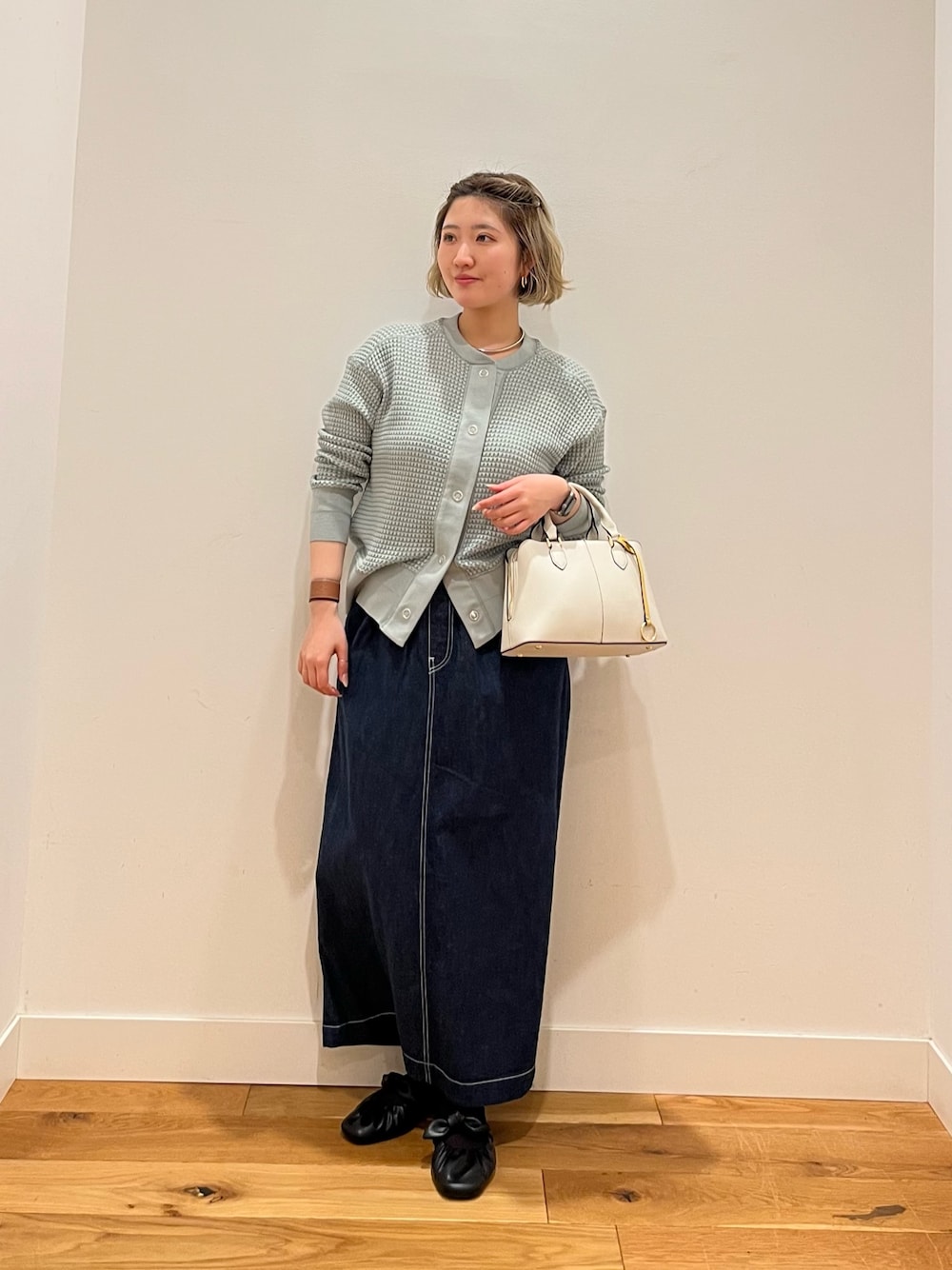 裾は直線的なフラット仕様ながら、全体に丸みを持たせたコクーンシルエットで気になる腰回りやヒップを自然にカバーしつつ、女性らしい柔らかなフォルムが嬉しい☺️