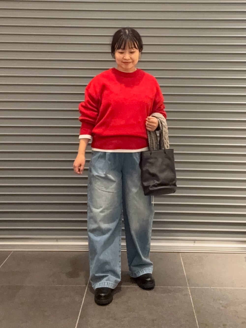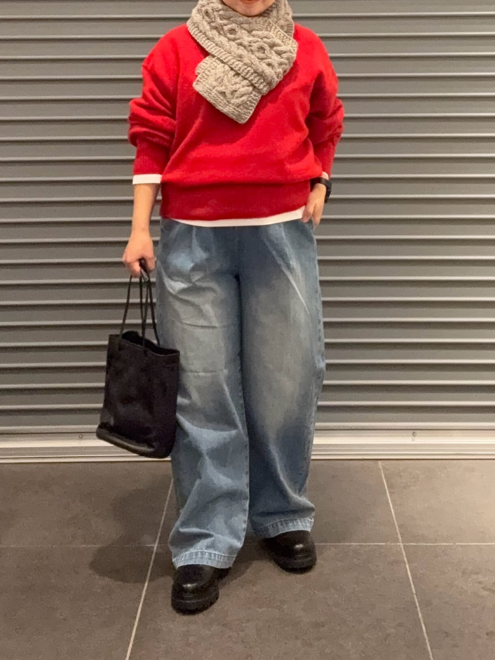 軽くて柔らかいハミルトンウールの上質なニットです。ゆるっとしたシルエットでも襟周りはクルーネックなので、スッキリ着れます。