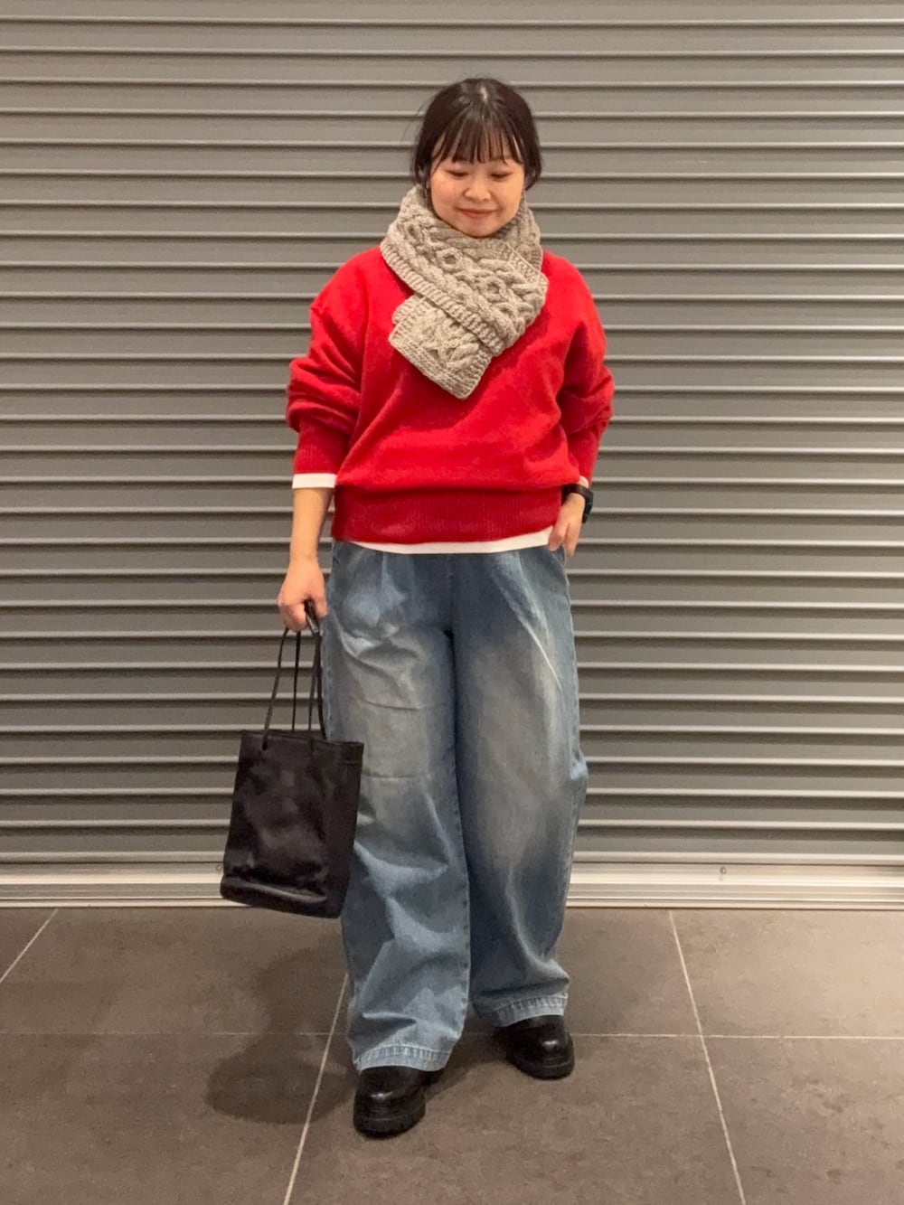 編み地が可愛いマフラーです。さっと巻けてポイント使いに。ギフトにも人気です🎁