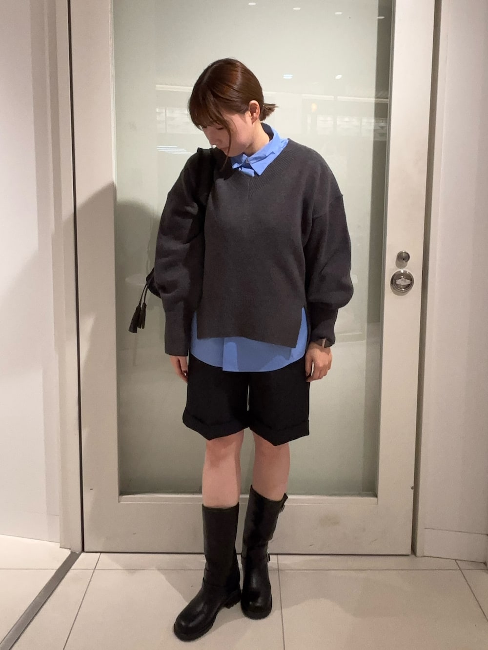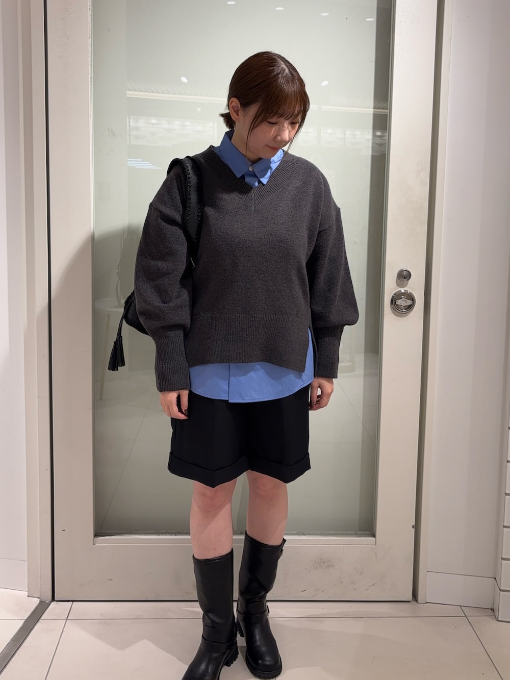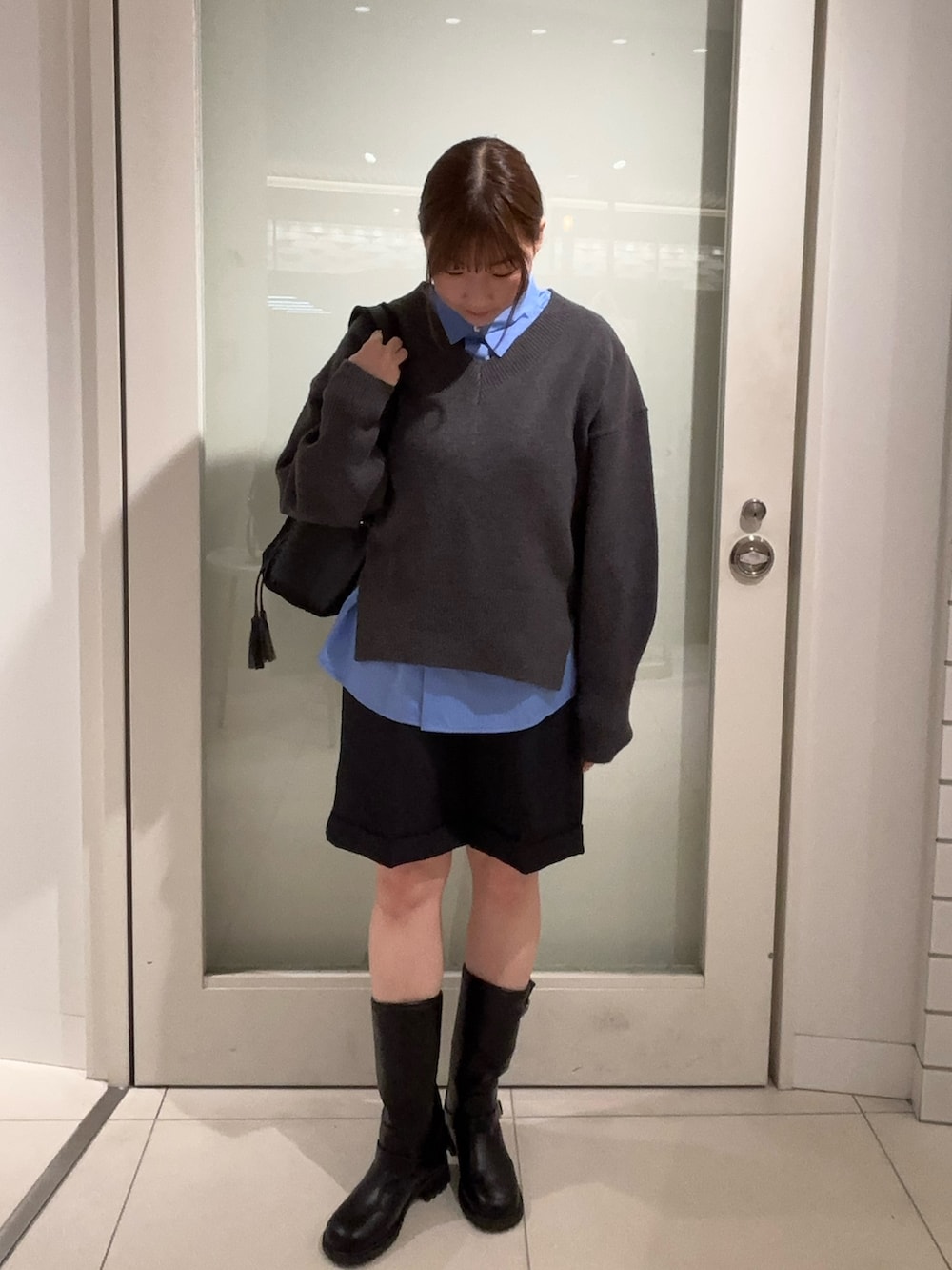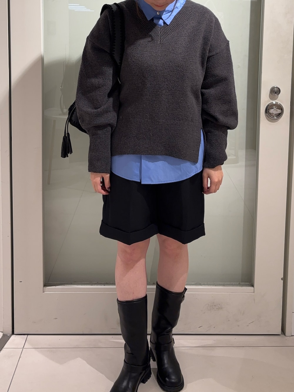 シンプルになりやすいセーターですがシャツとレイヤードする事でシンプルすぎないコーデに🤍