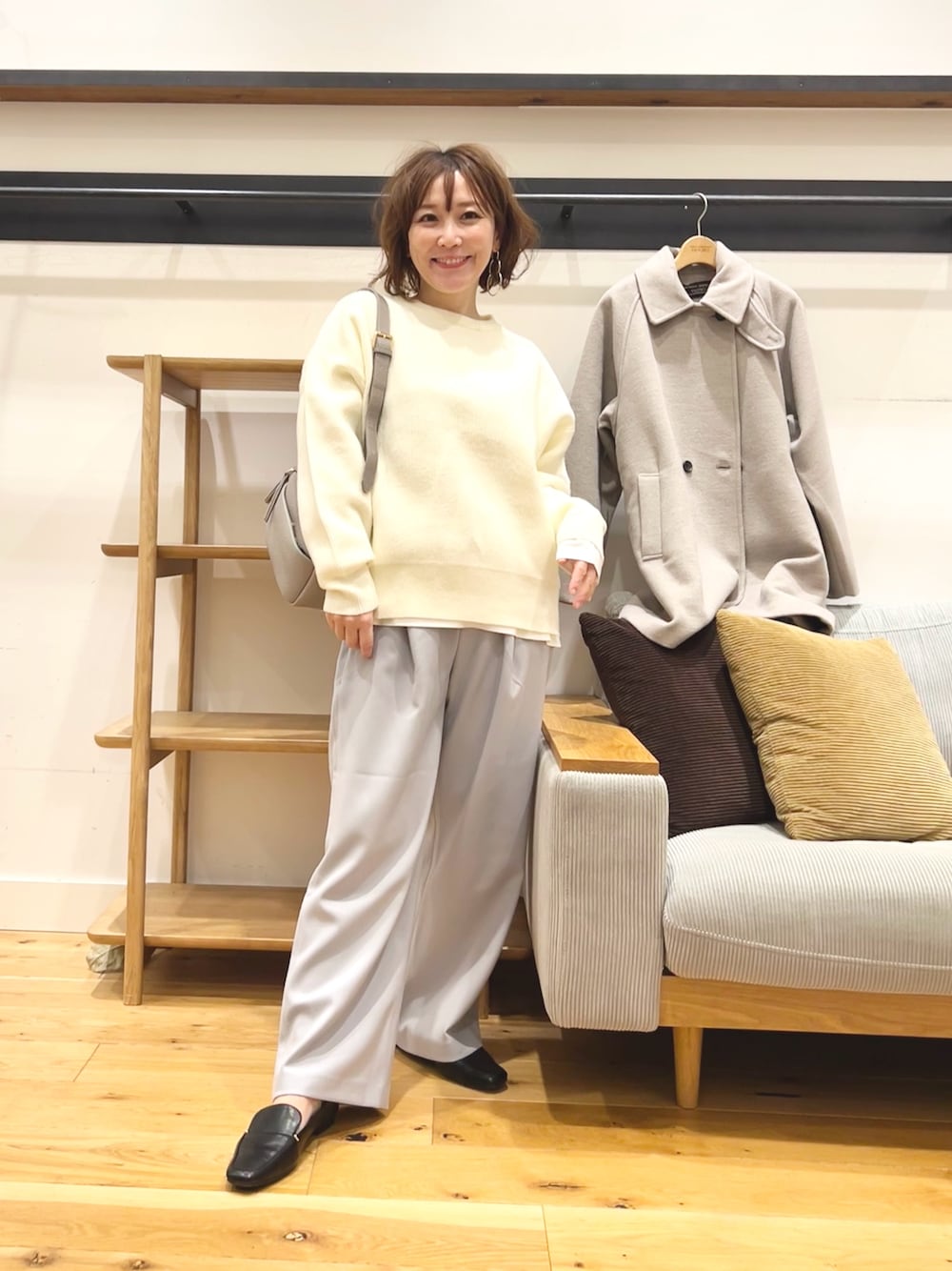 ニュアンスカラーがどんなトップスとも相性よく、カジュアルからきれいめまで幅広く合わせられます◎