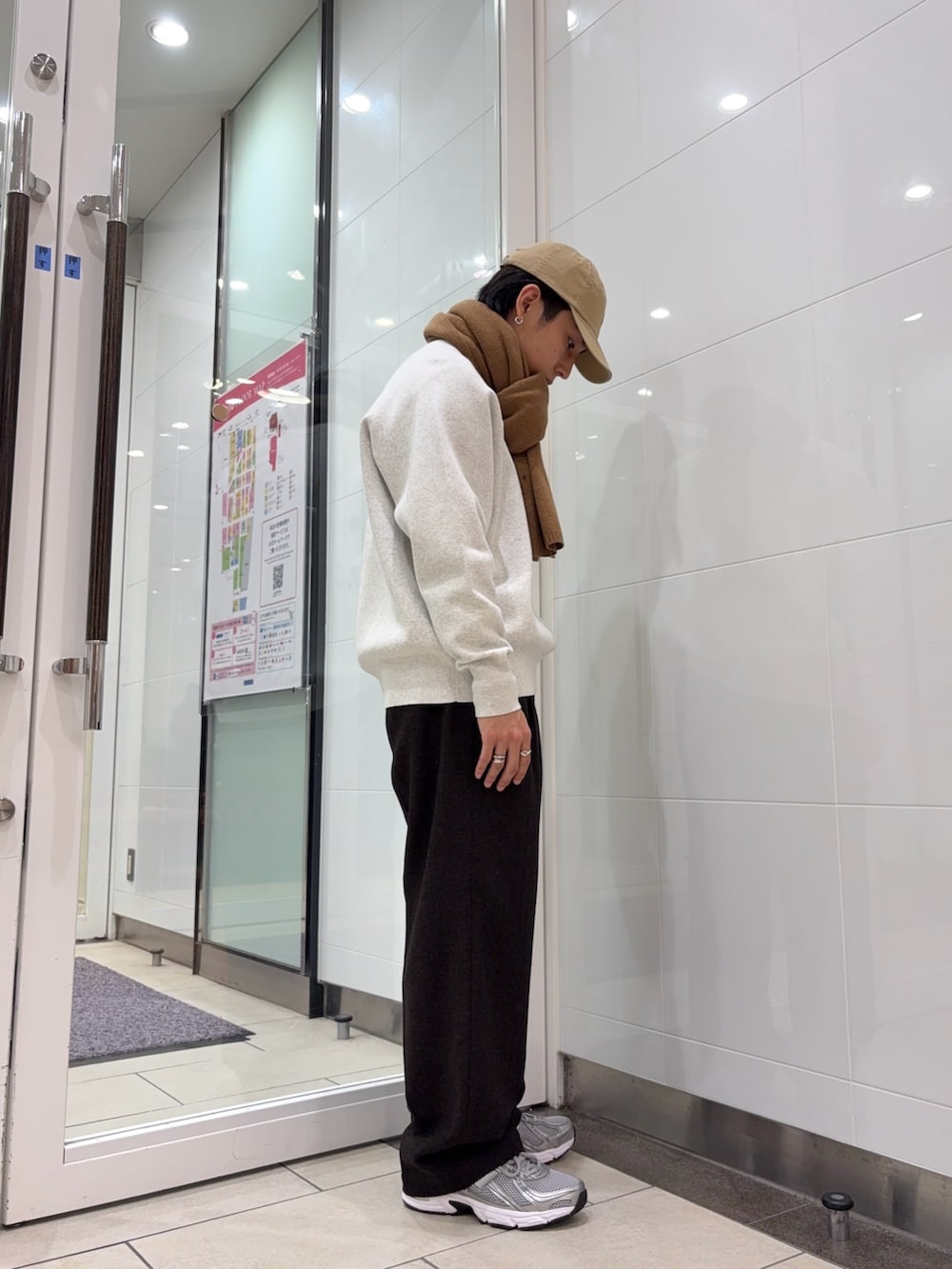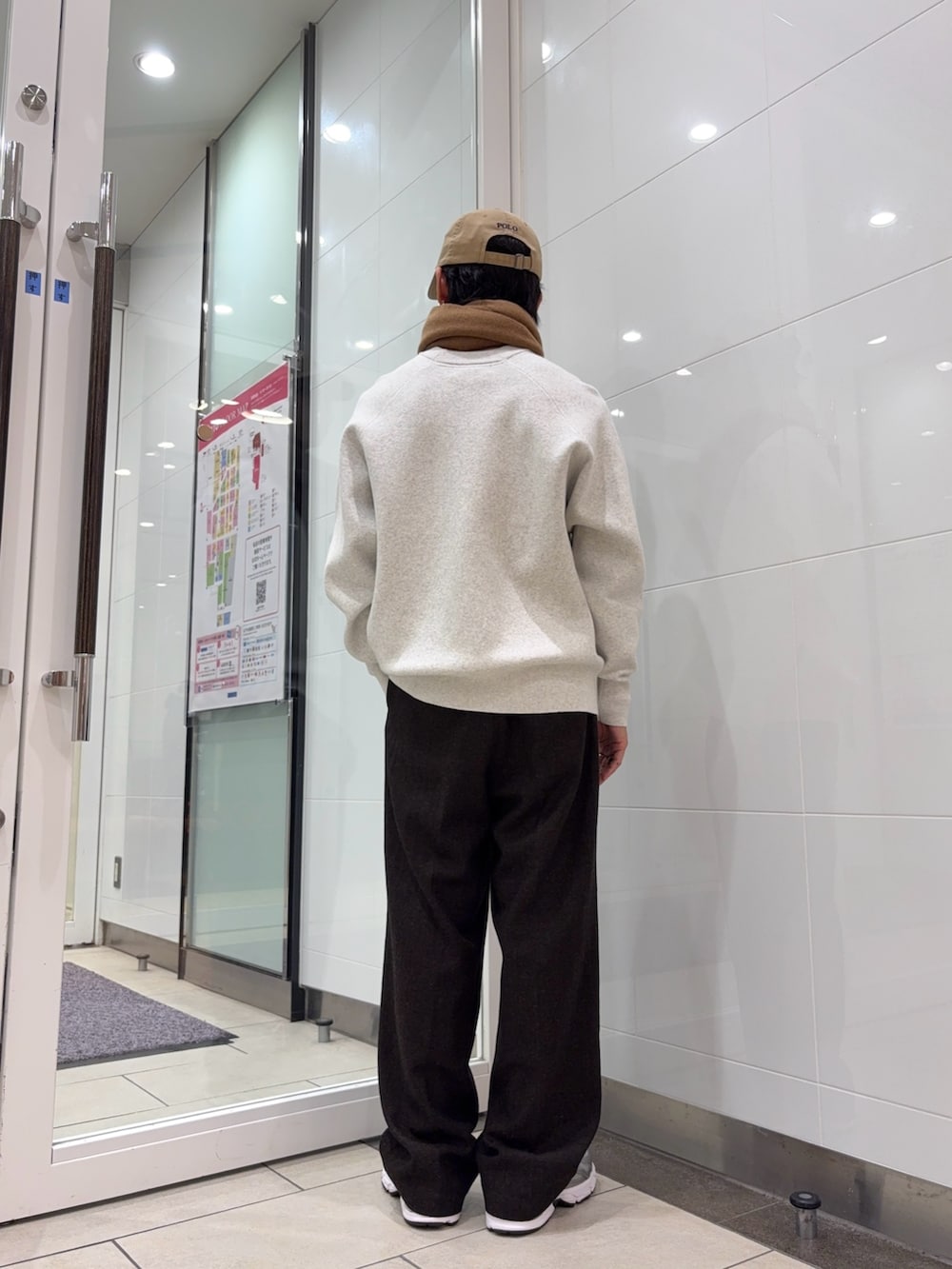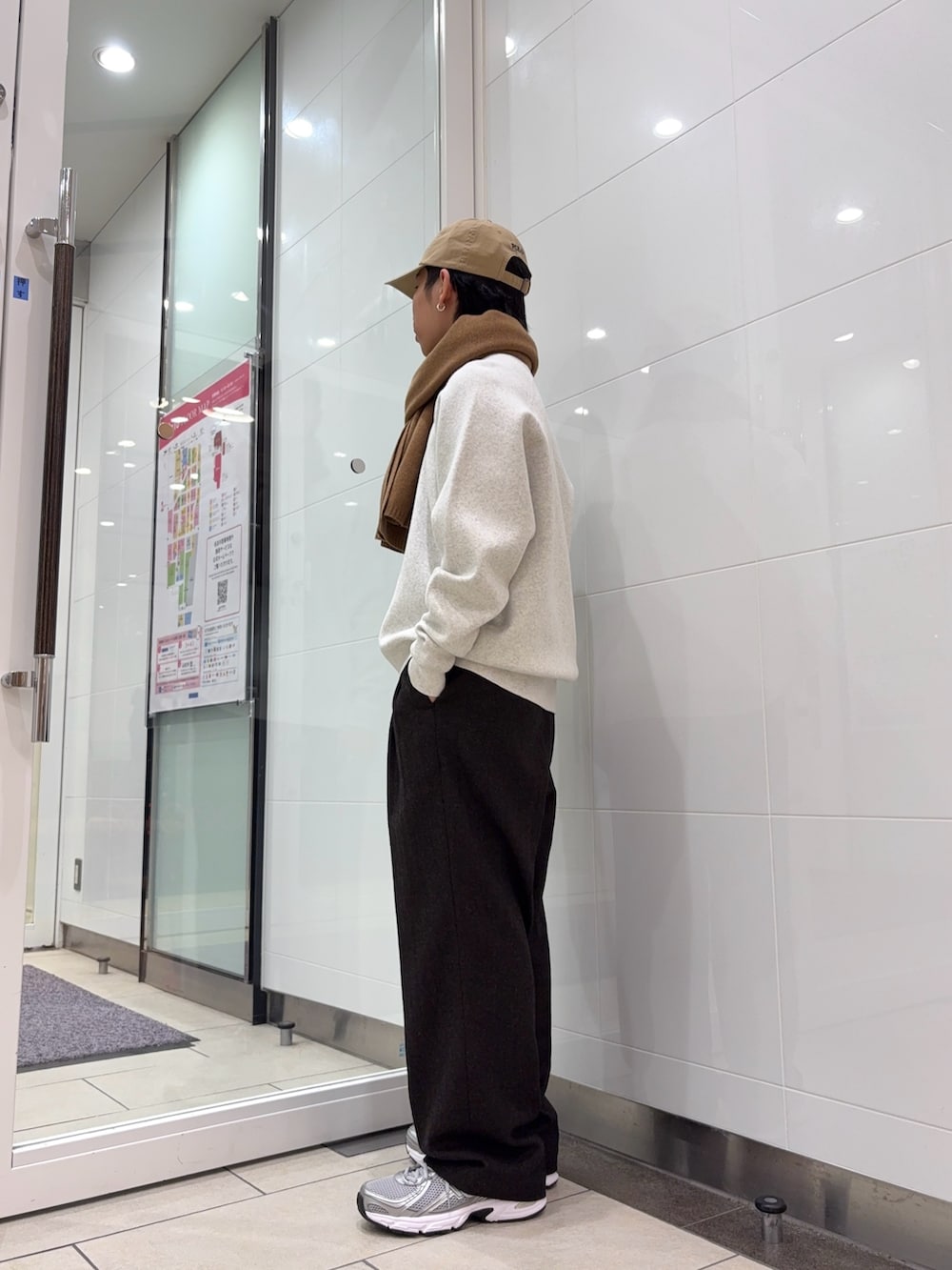 パンツはヘリンボーン素材を使ったキレイめパンツです。シルエットがとにかく綺麗なのとヘリボーンの暖かさがこの冬のコーデを格上げしてくれます。