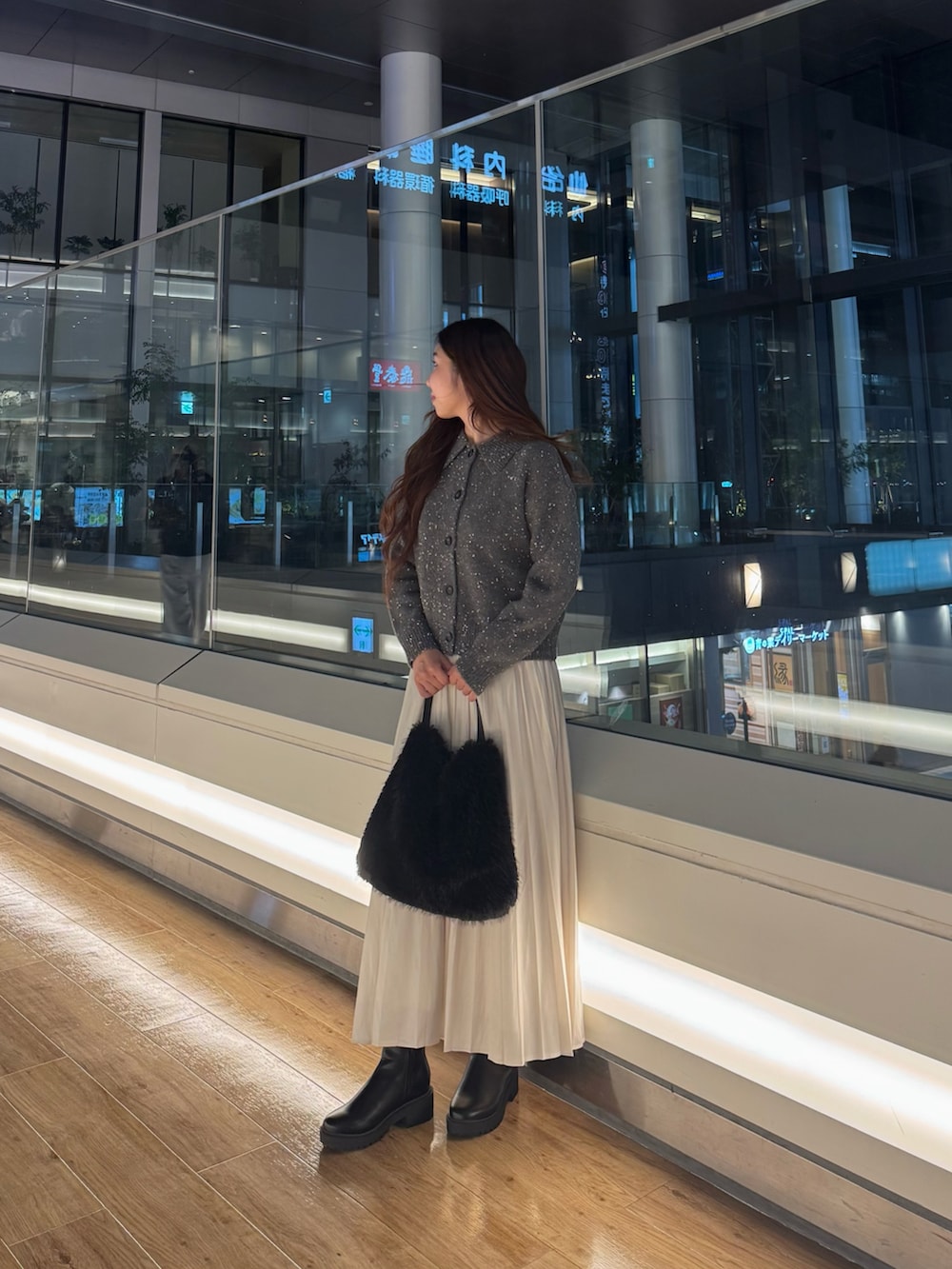 今回はスカートと合わせてみましたが、スカートだけでなく、デニムスタイルでカジュアルに、パンツと合わせて綺麗めに、着回し抜群のアイテムです✨
