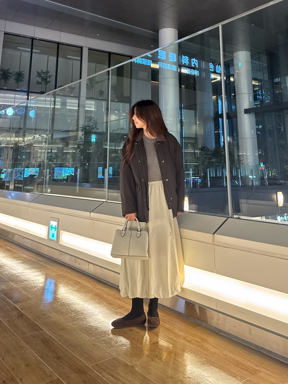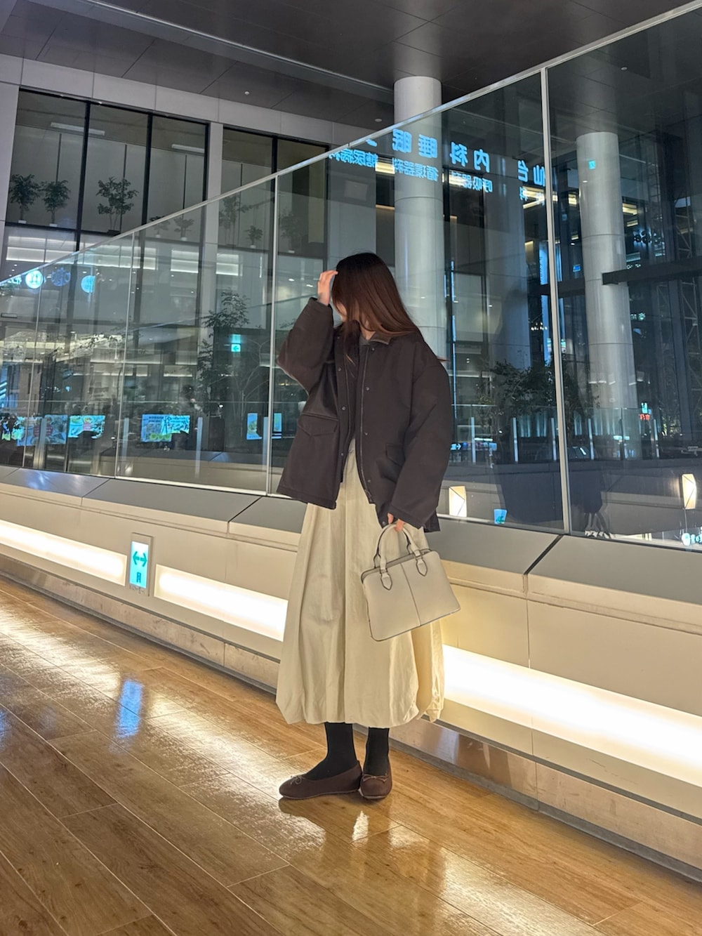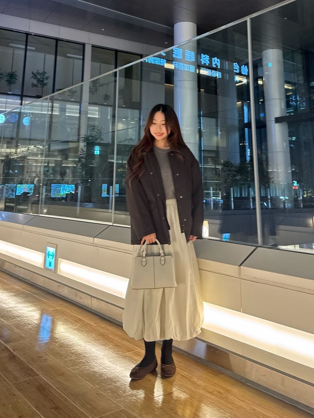 どうしても暗くなってしまいがちな冬のアウターの中に、合わせていただくとパッと華やかな印象を与えてくれます!