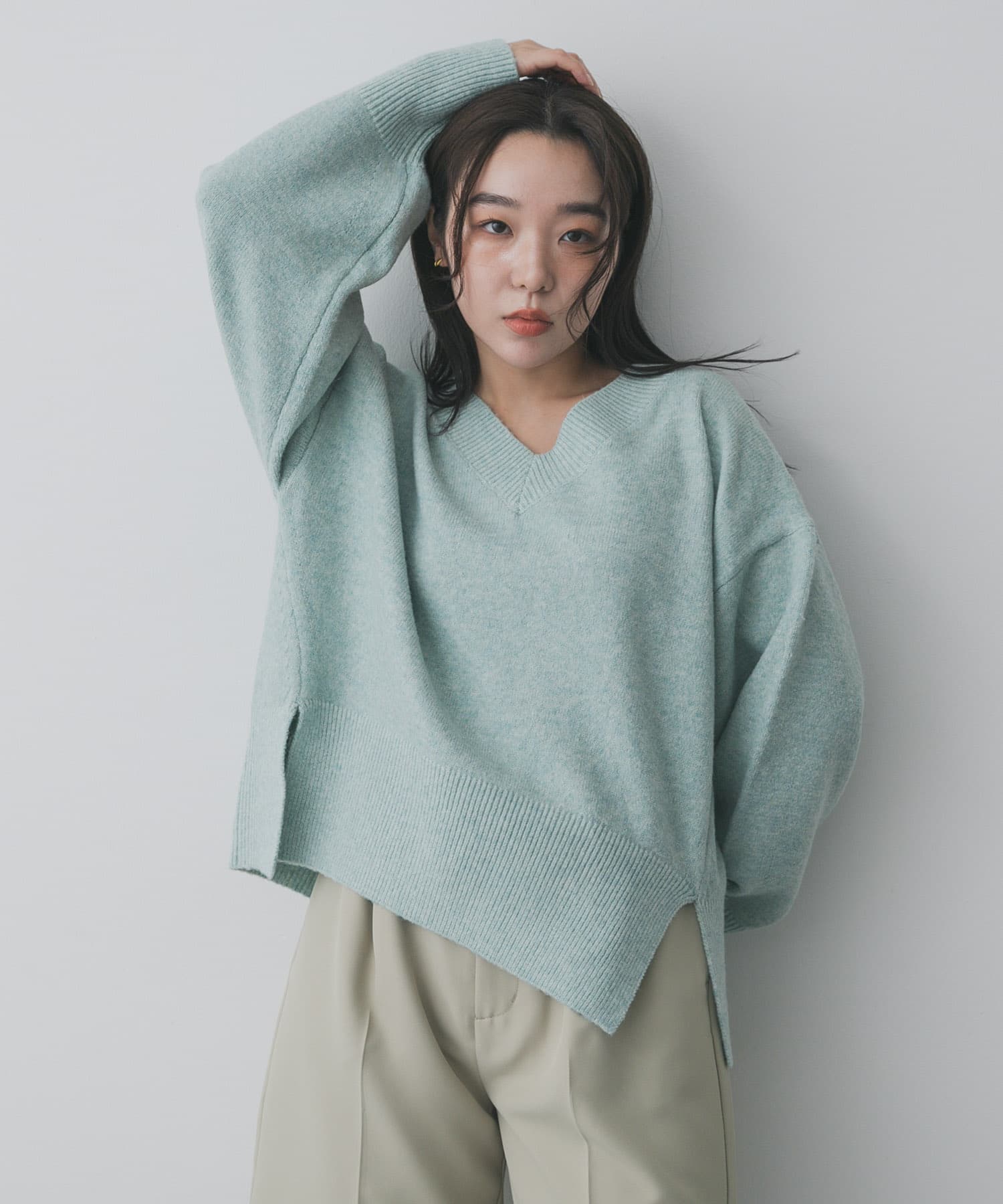 SENSE OF PLACE『洗濯可』サイドスリットVネックニット- 着用カラー: