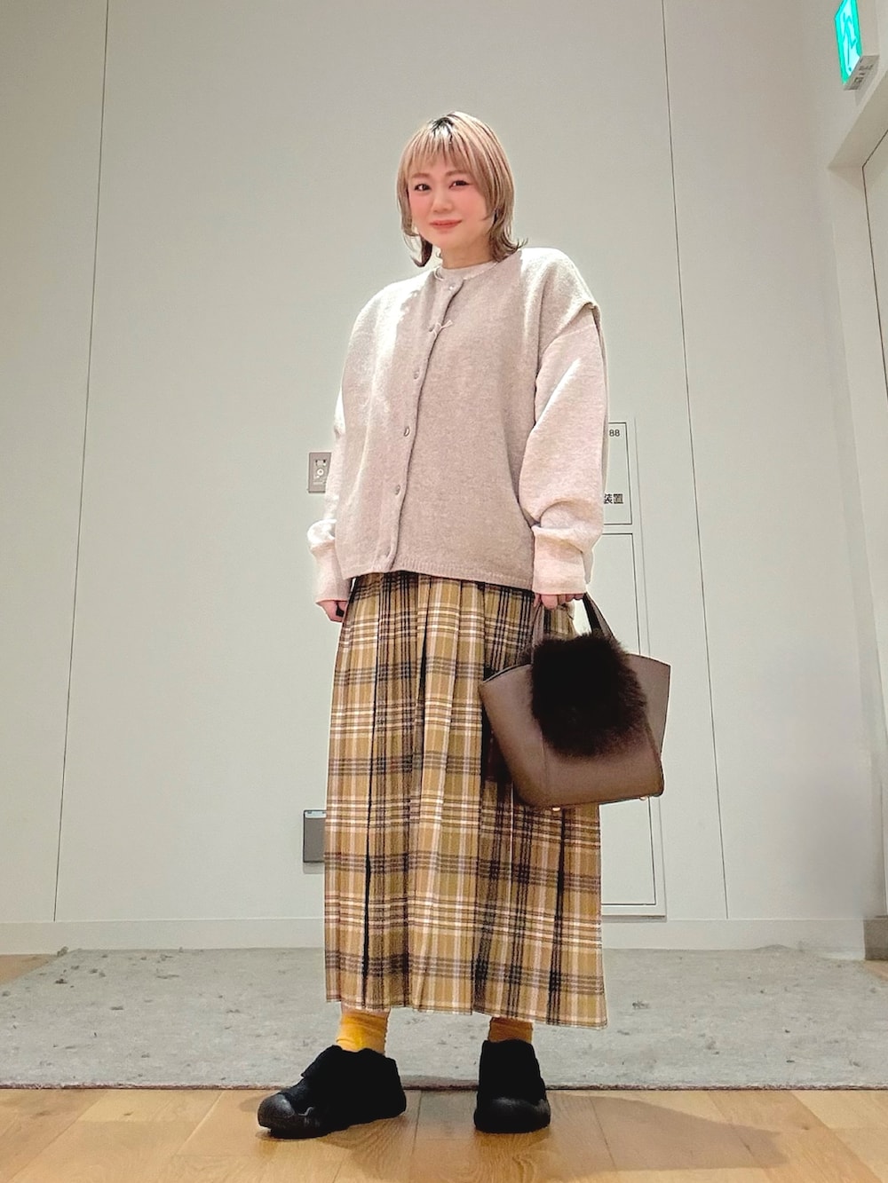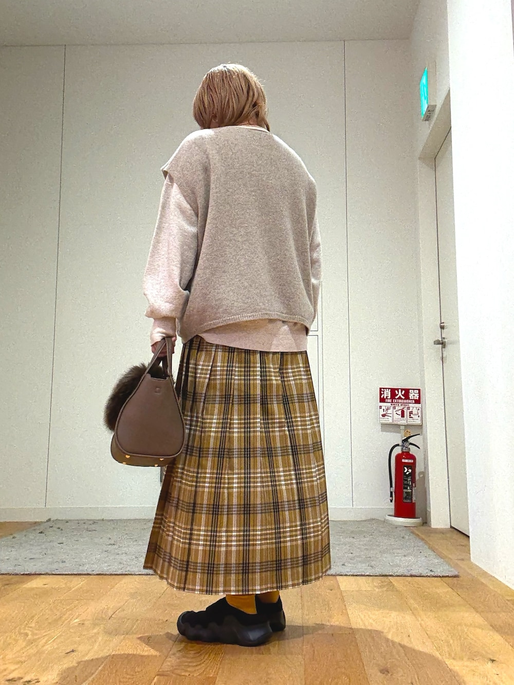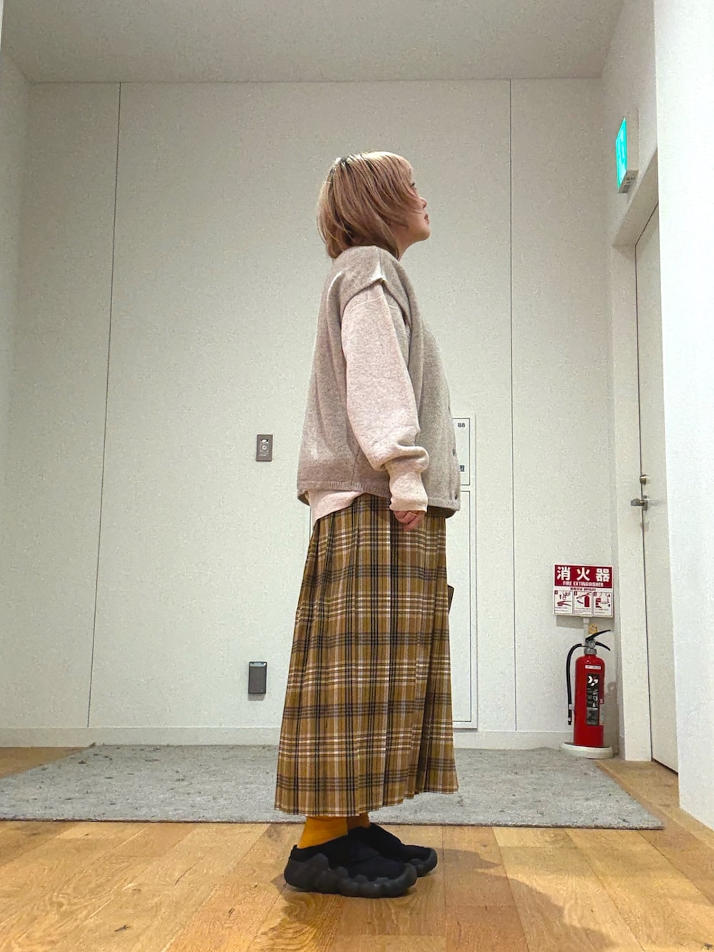 かぐれのとっても柔らかくて着心地のよいスウェットのコーデです!おすすめのリアルバイアイテムです。コーデがカジュアルになりすぎないようニットベストをレイヤードしました。こちらも軽くて柔らかくておすすめです!ポイントになるイエローのチェックスカートとリバーシブルでつかえるアーバンリサーチのアウターを合わせました。年齢問わず挑戦しやすいカジュアルコーデです!