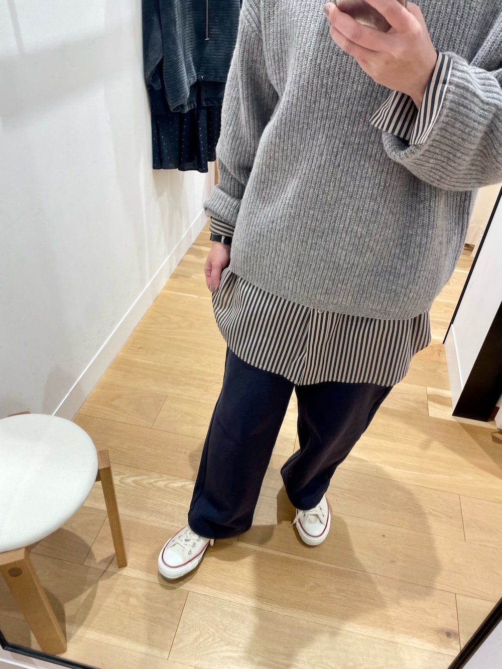 ハミルトンウールの上質さと個性的なシャツのレイヤーでこなれ感。