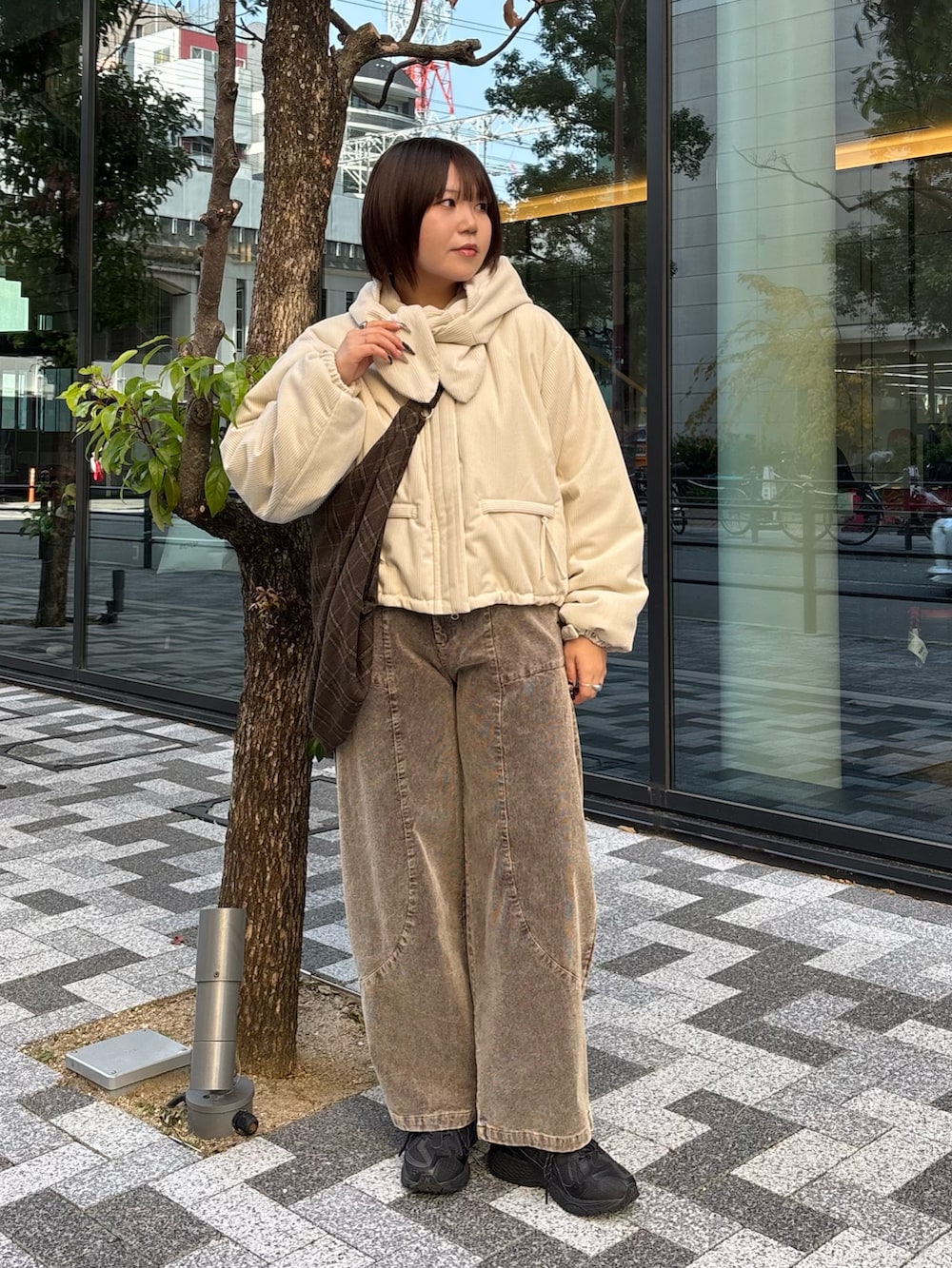 ・アウターもパンツもコーデュロイで合わせて、コーデに統一感と秋冬感を演出.ᐟ.ᐟ.ᐟ