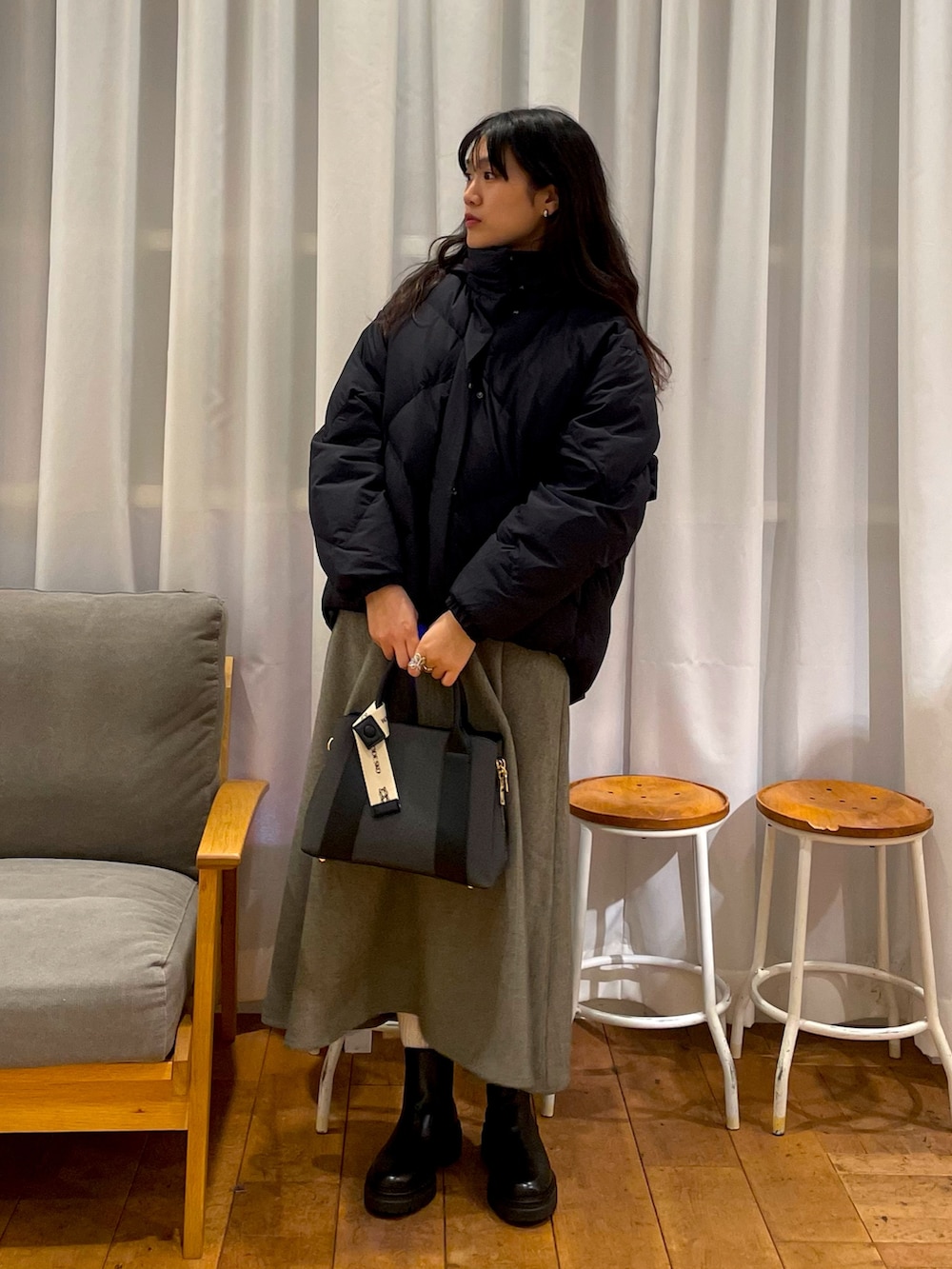 人気のグリーンダウンジャケットを使ってキレイめコーデを組みました!