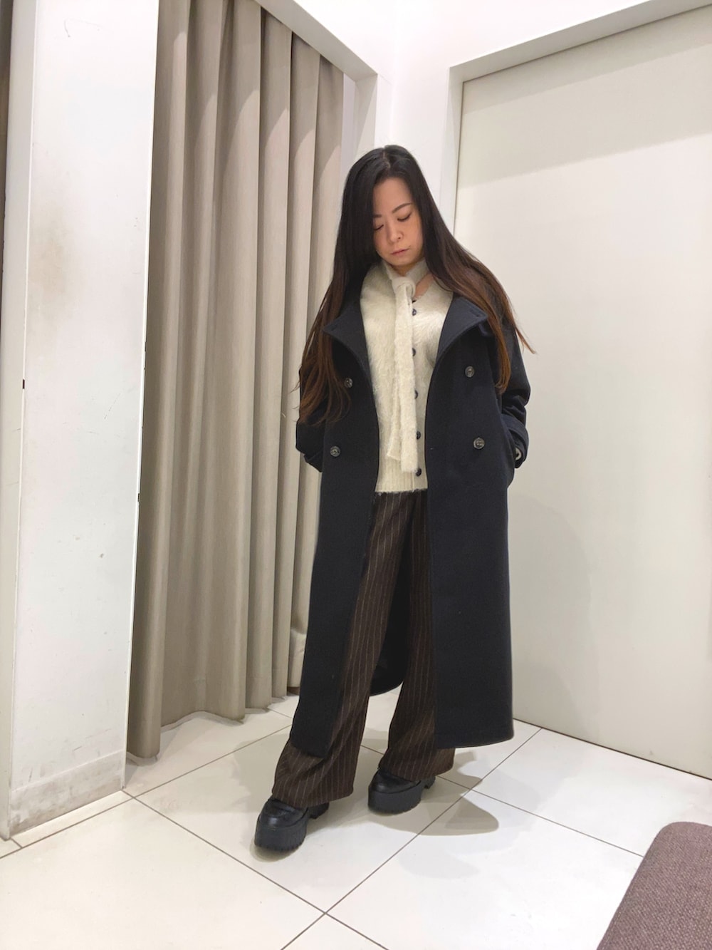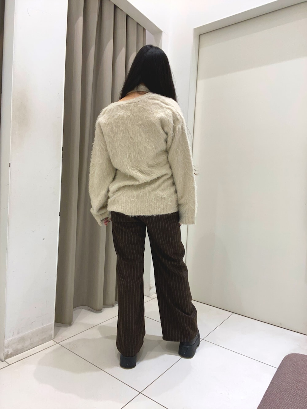フワフワのカーディガンをあえてメンズっぽく着て、パンツは少しボリュームを持たせるためメンズの物で!
