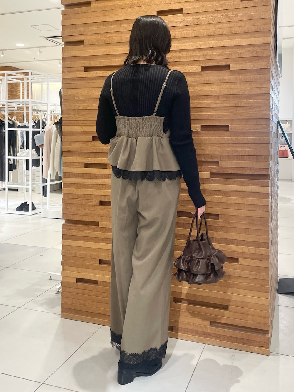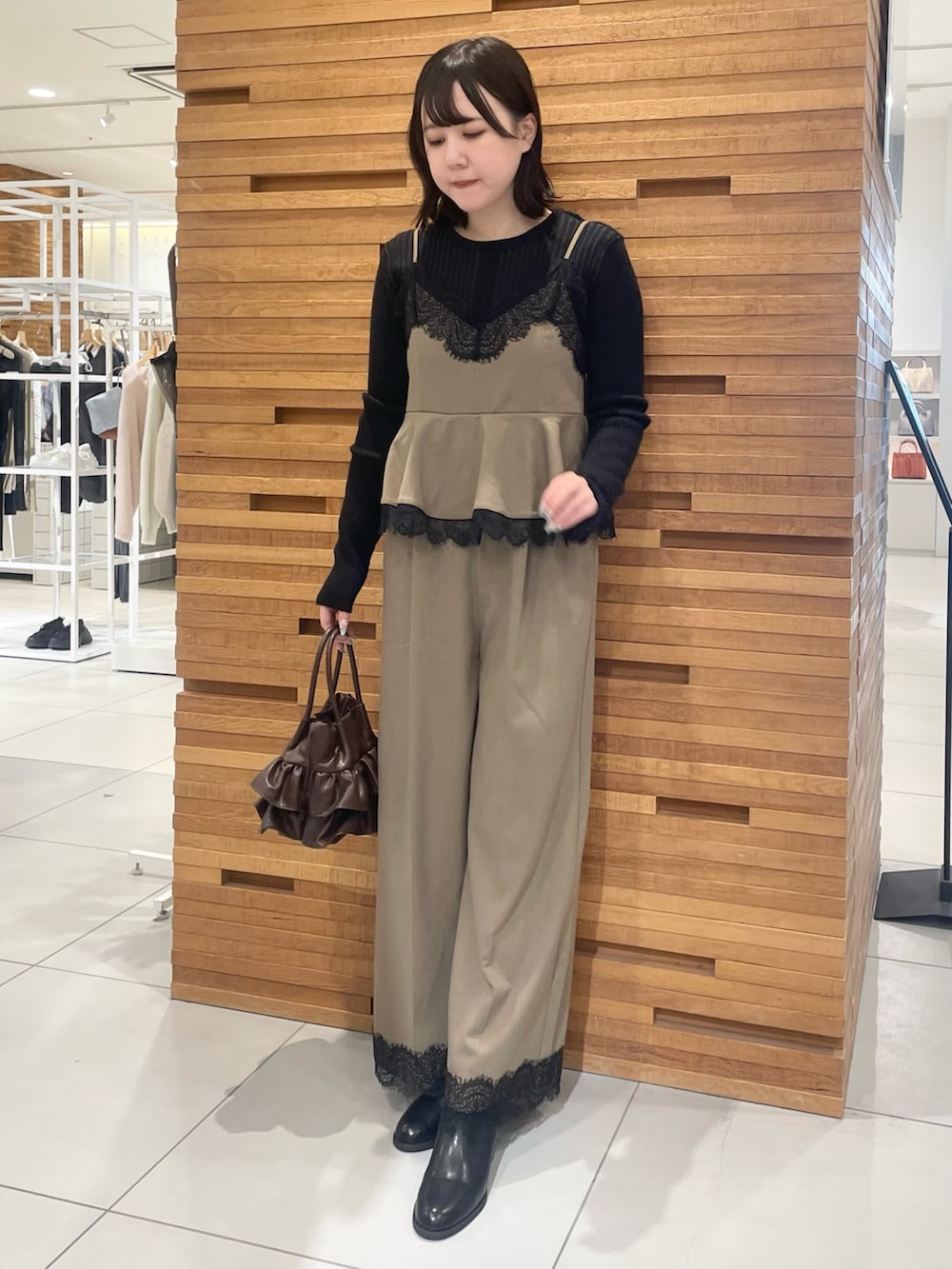 なめらかな肌触りと上品な落ち感のある素材・配色のレースが、コーディネートに目を惹くアクセントをプラス・シャーリング仕様で着心地が良く、オンオフ問わず使えるなめらかな肌触りと上品な落ち感のある素材を使用したオールインワンになっています🤎